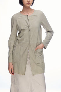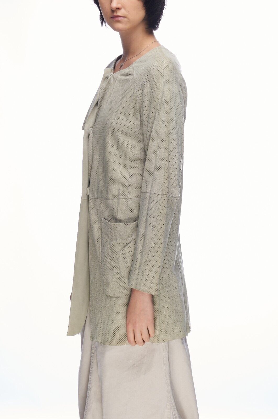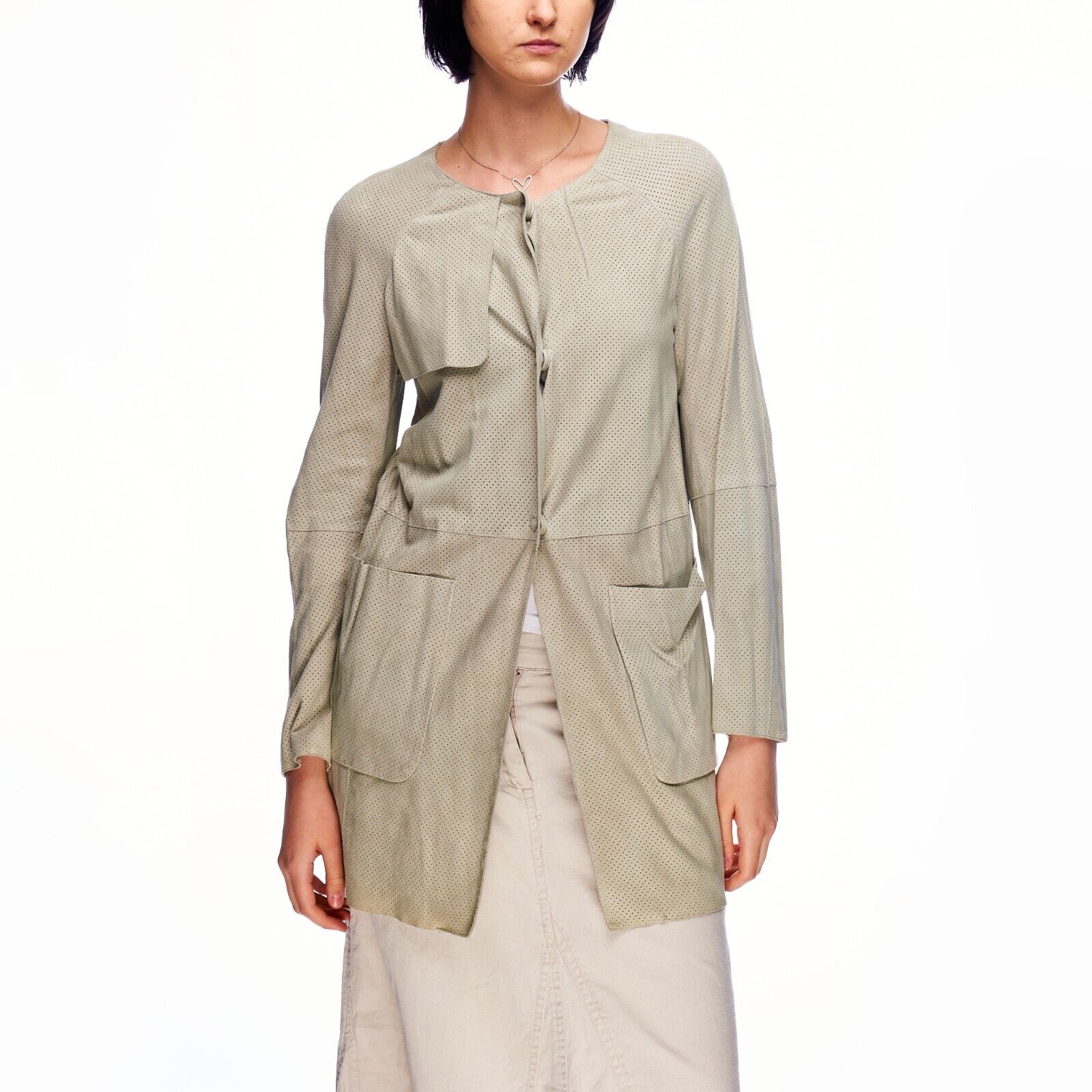 BROGDEN Jacket Grey Perforated Leather Snap Womens Size 40 IT
