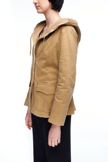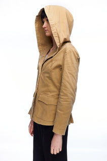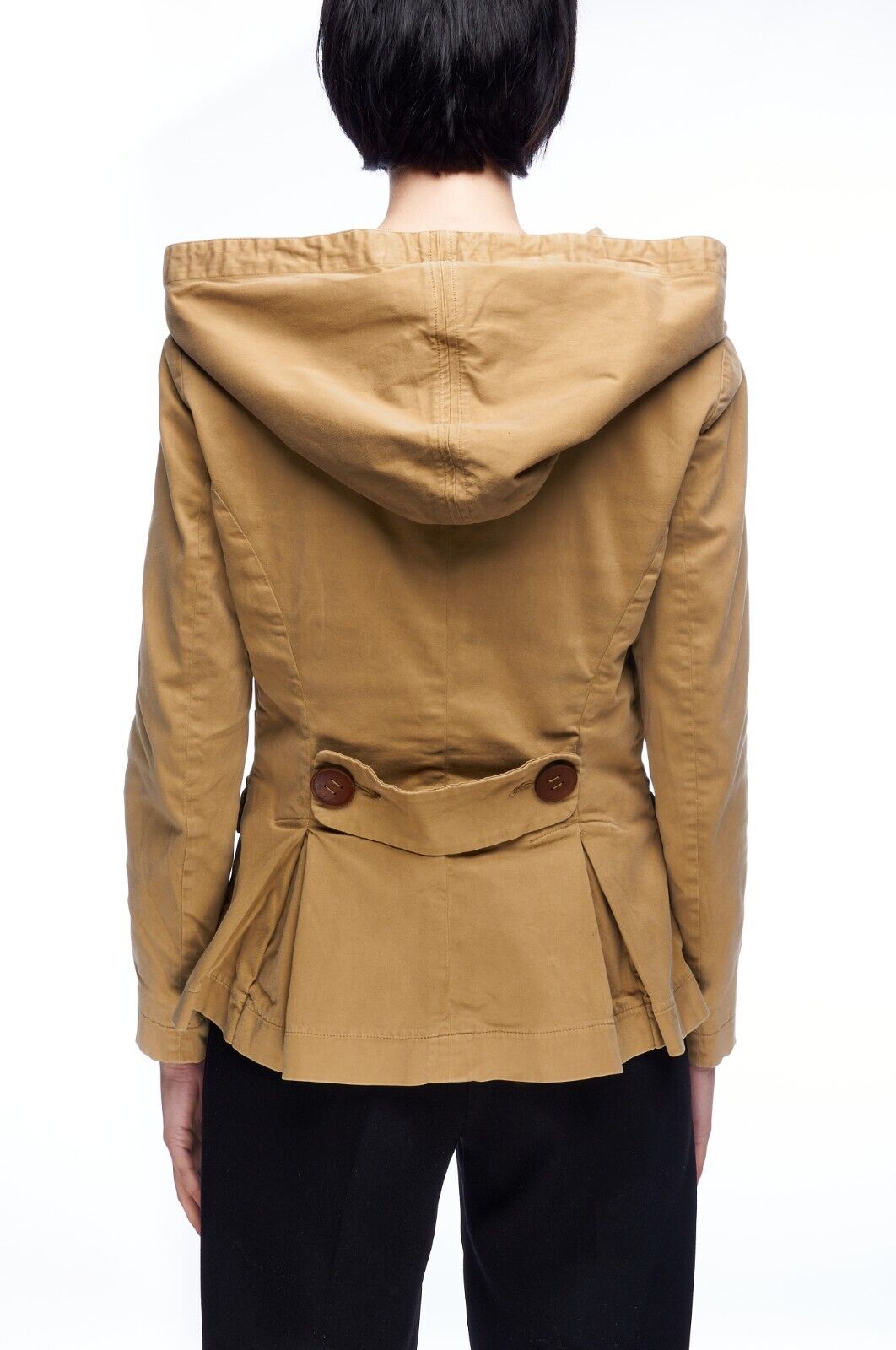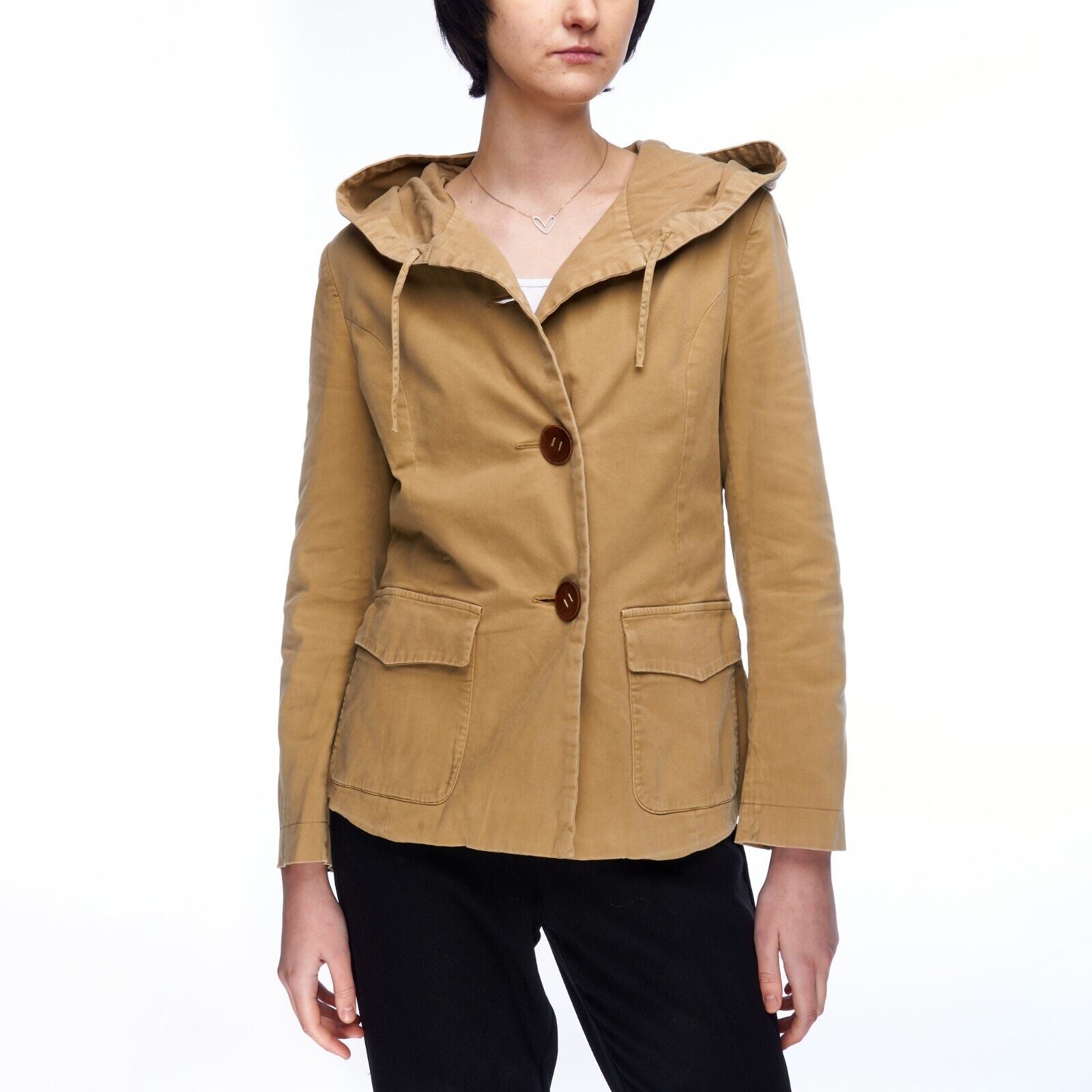 HACHE Hooded Jacket Beige Cotton Women's Half Belt Coat Size 46