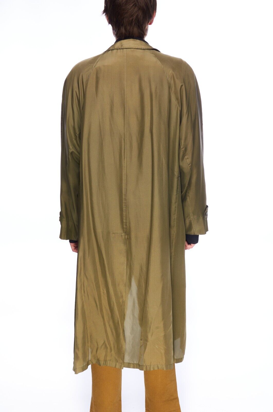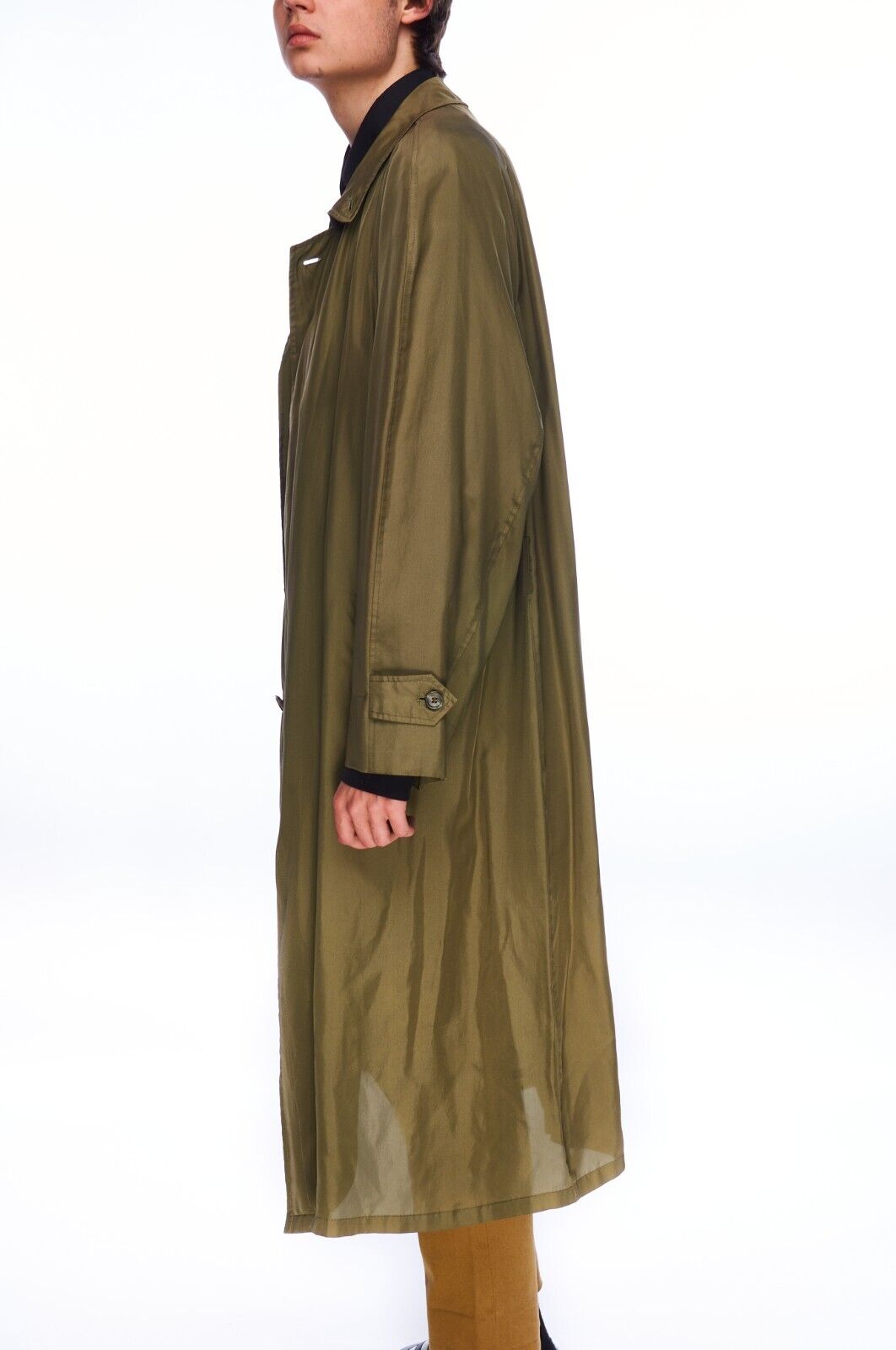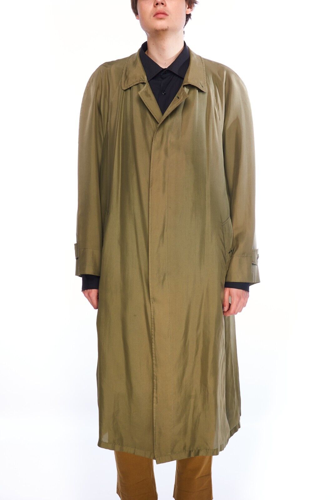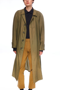 HERNO Cloak Jacket Green Silk Women's Lightweight Long Coat Size 50