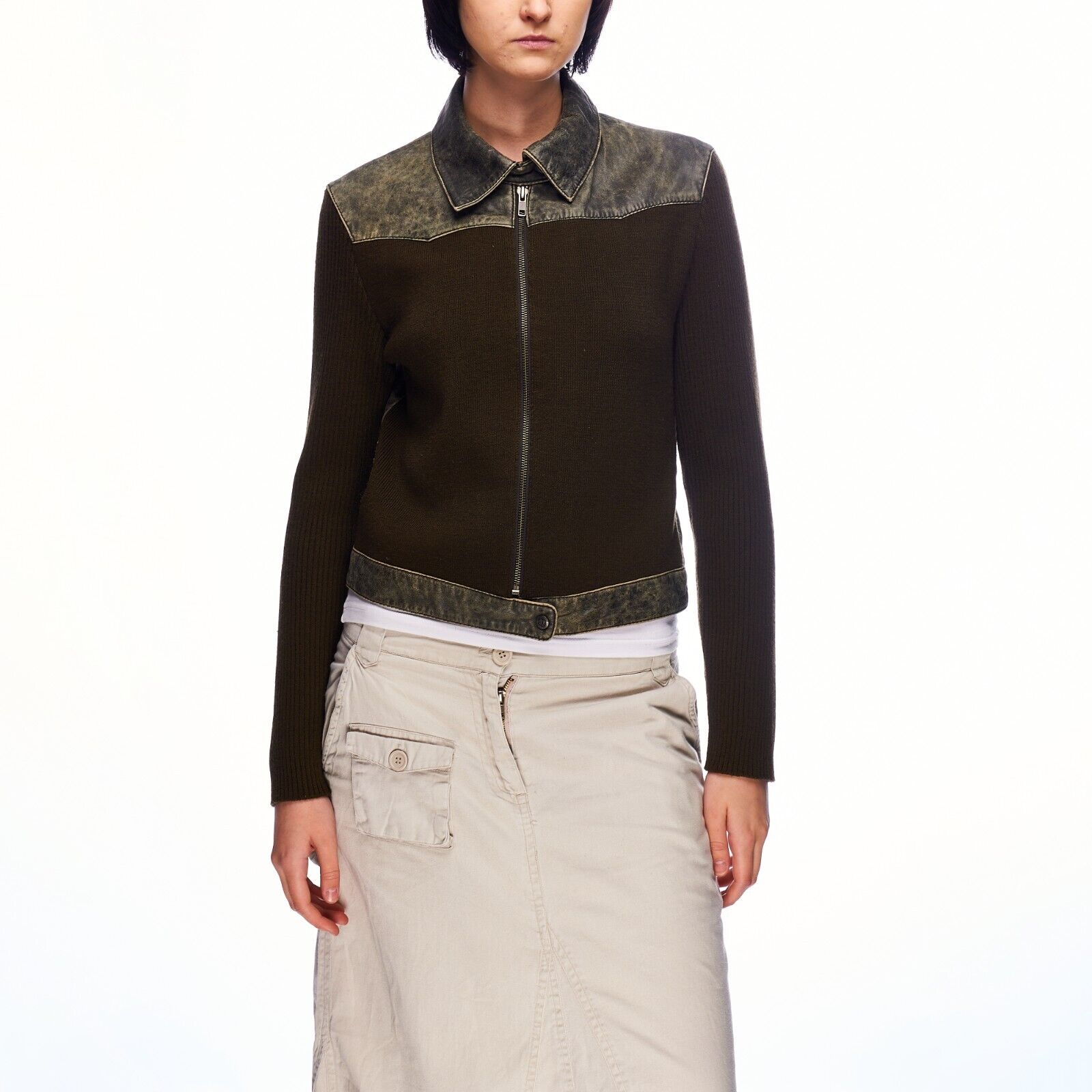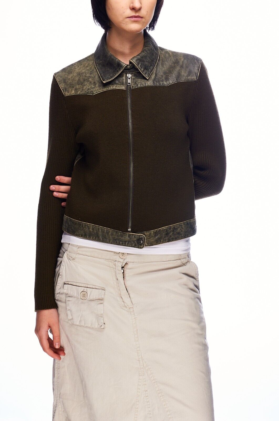 MARLBORO CLASSICS Jacket Brown Leather Wool Full Zip Womens Size L