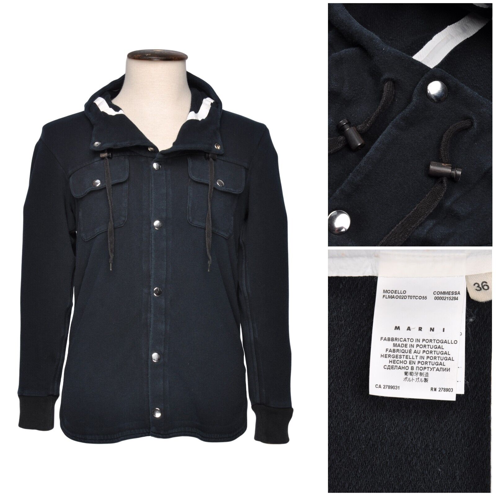 MARNI Jacket Navy Cotton Women's Hooded Overshirt Size 36