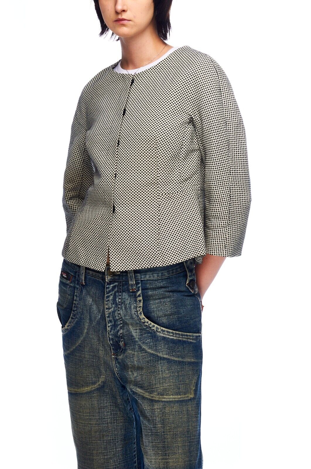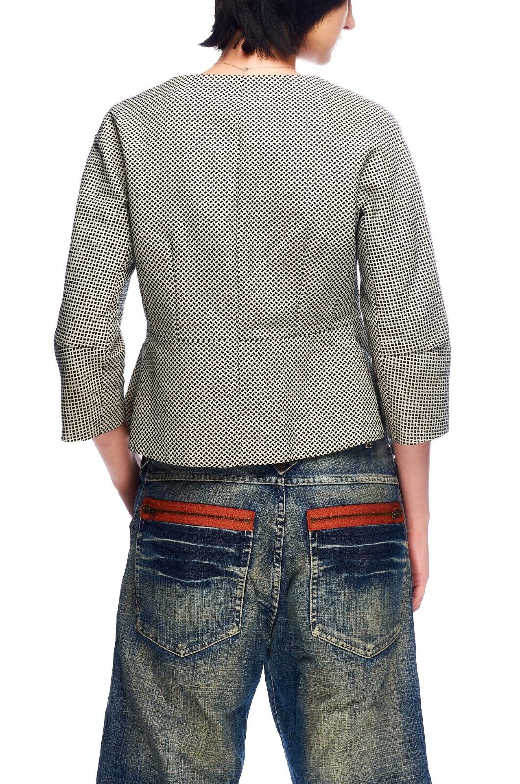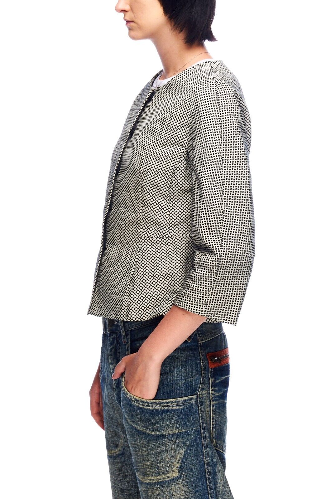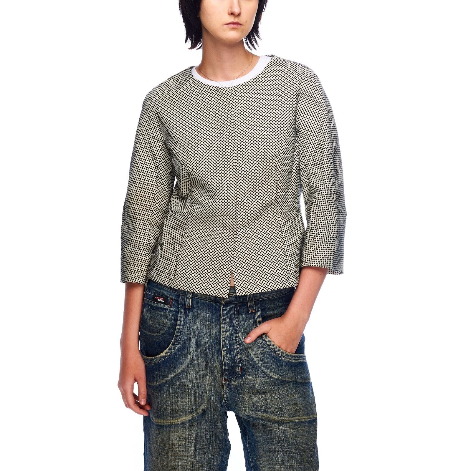 MAX MARA Weekend Blazer Jacket Black White Cotton Women's 3/4 Sleeves Size 40