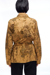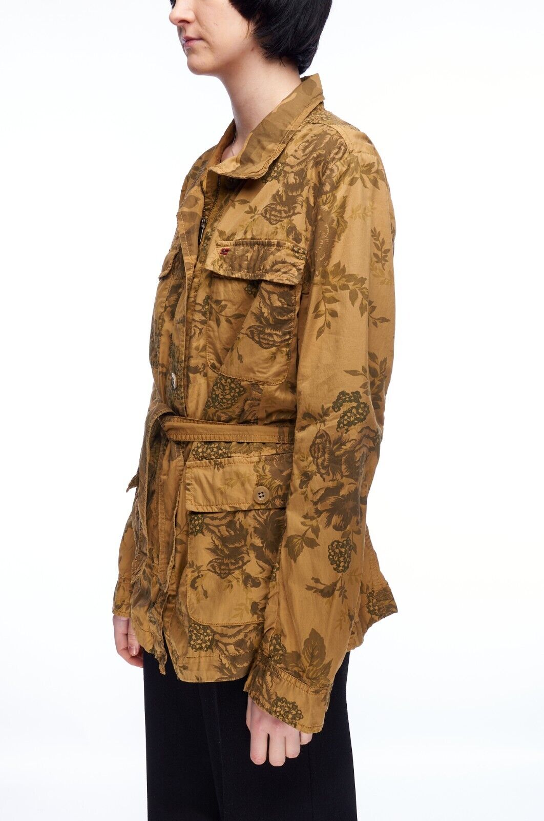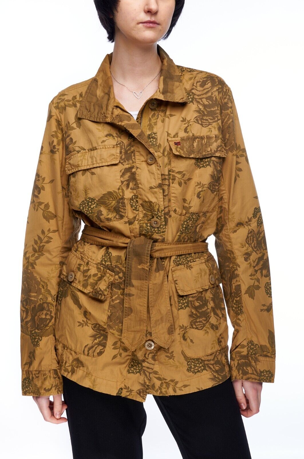 NAPAPIJRI Belted Utility Jacket Olive Brown Cotton Women's Camo Military Size XL