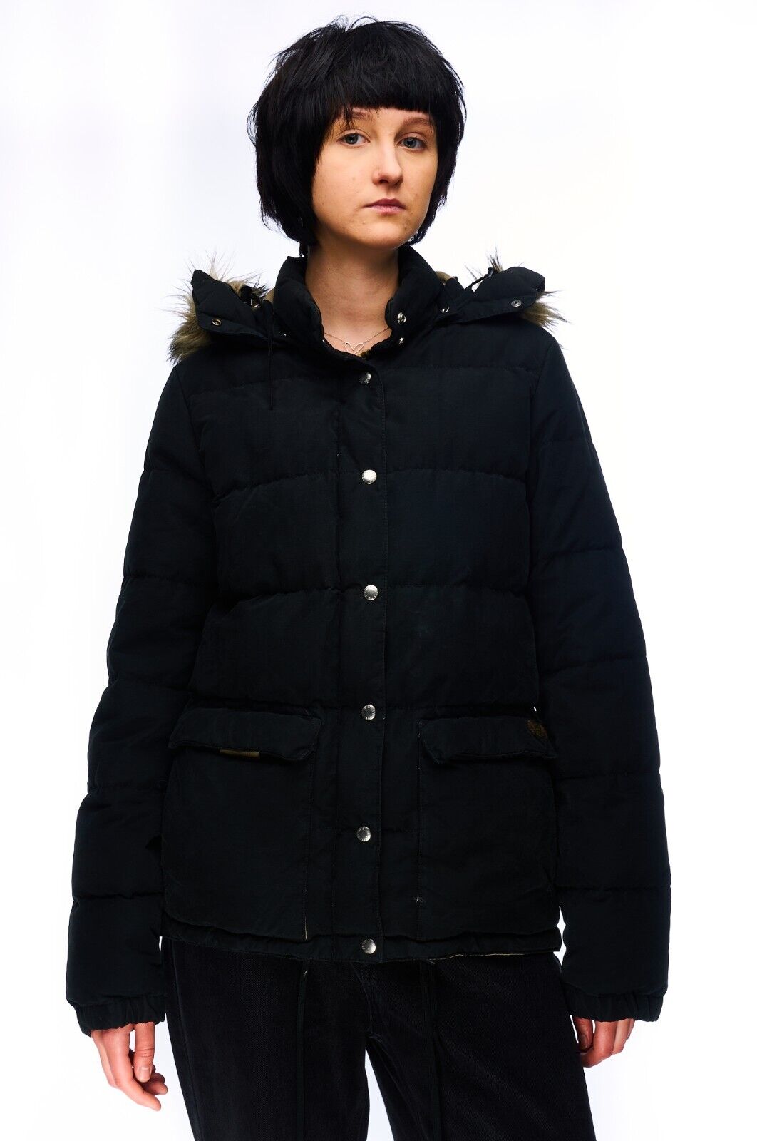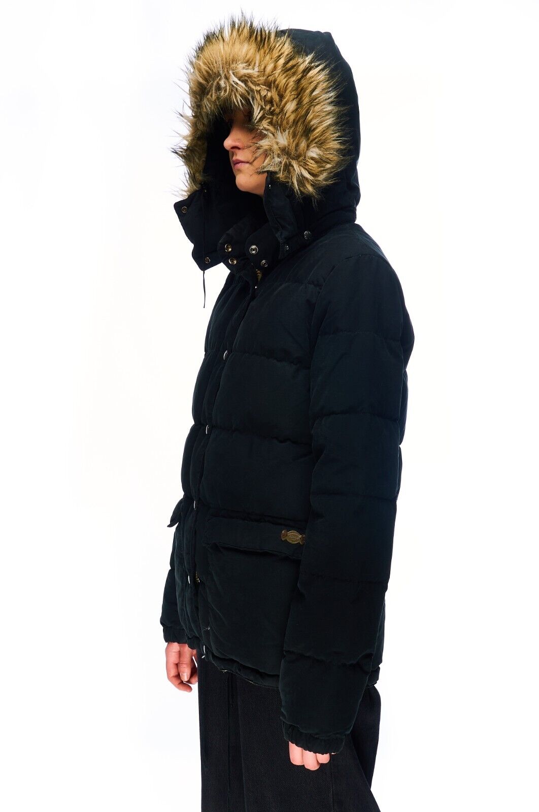 RALPH LAUREN Denim Hooded Jacket Black Women's Down Puffer Size M