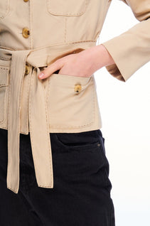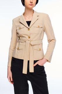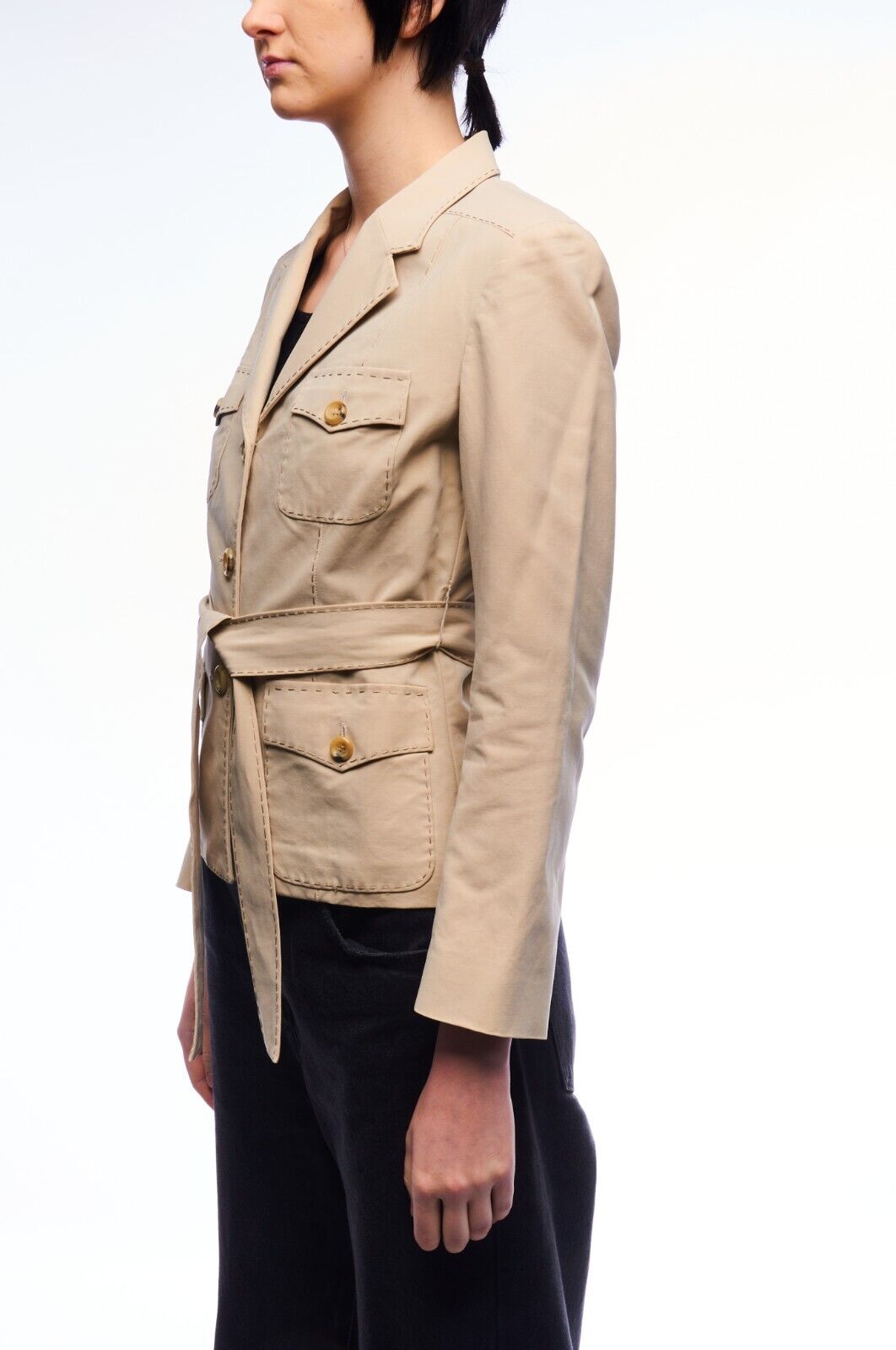 SARTORIA ATTOLINI Belted Jacket Beige Cotton Women's Utility Blazer Size 42