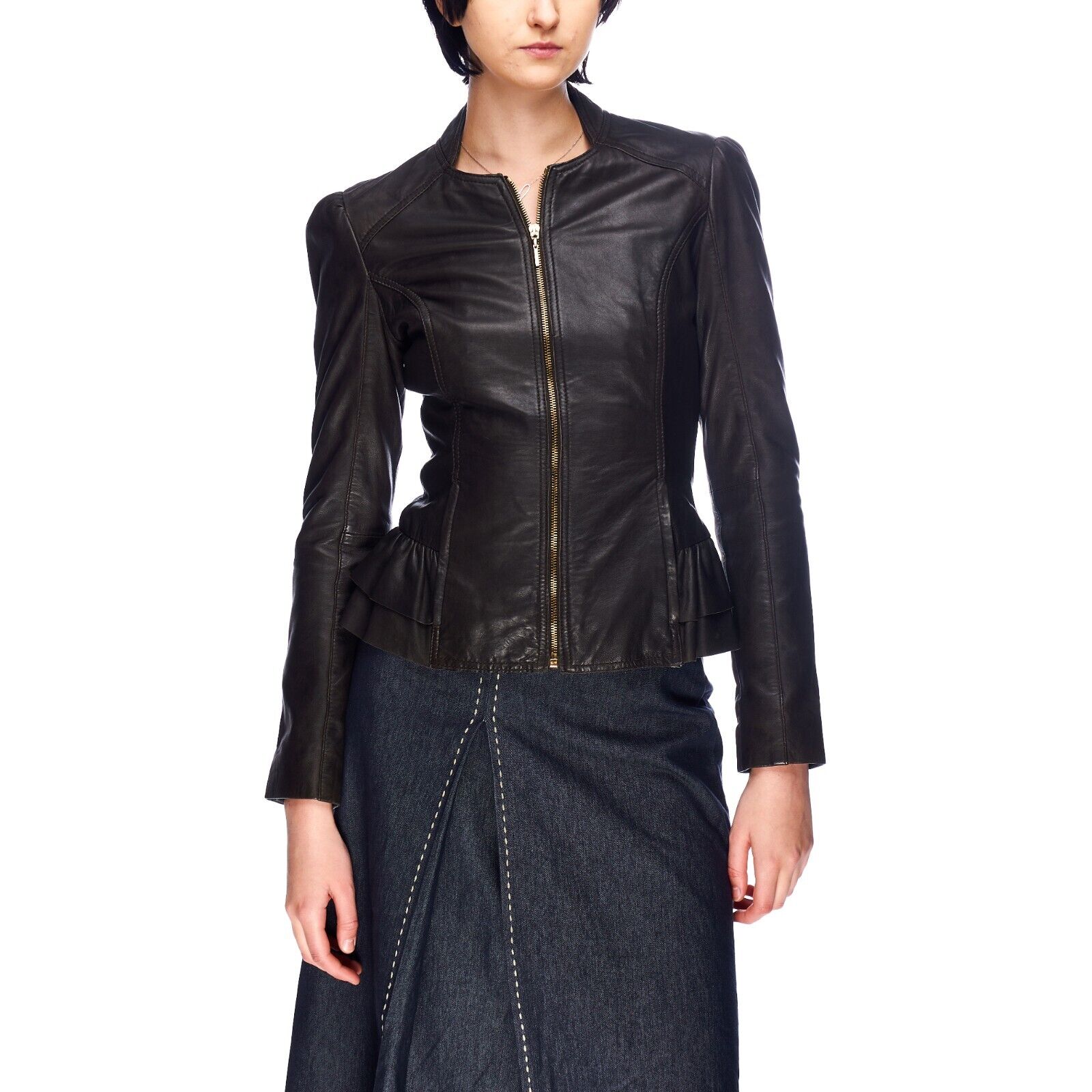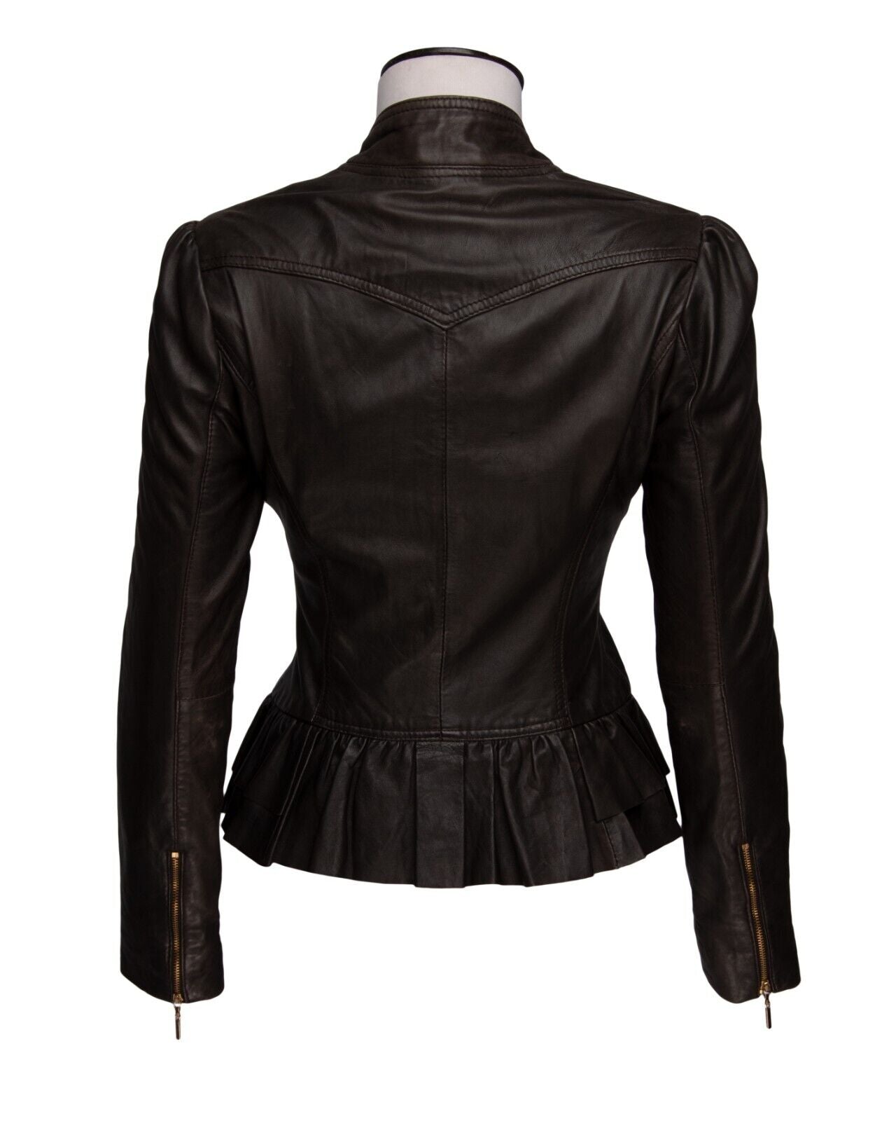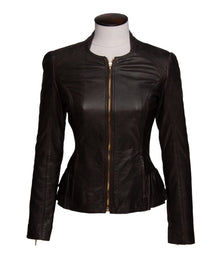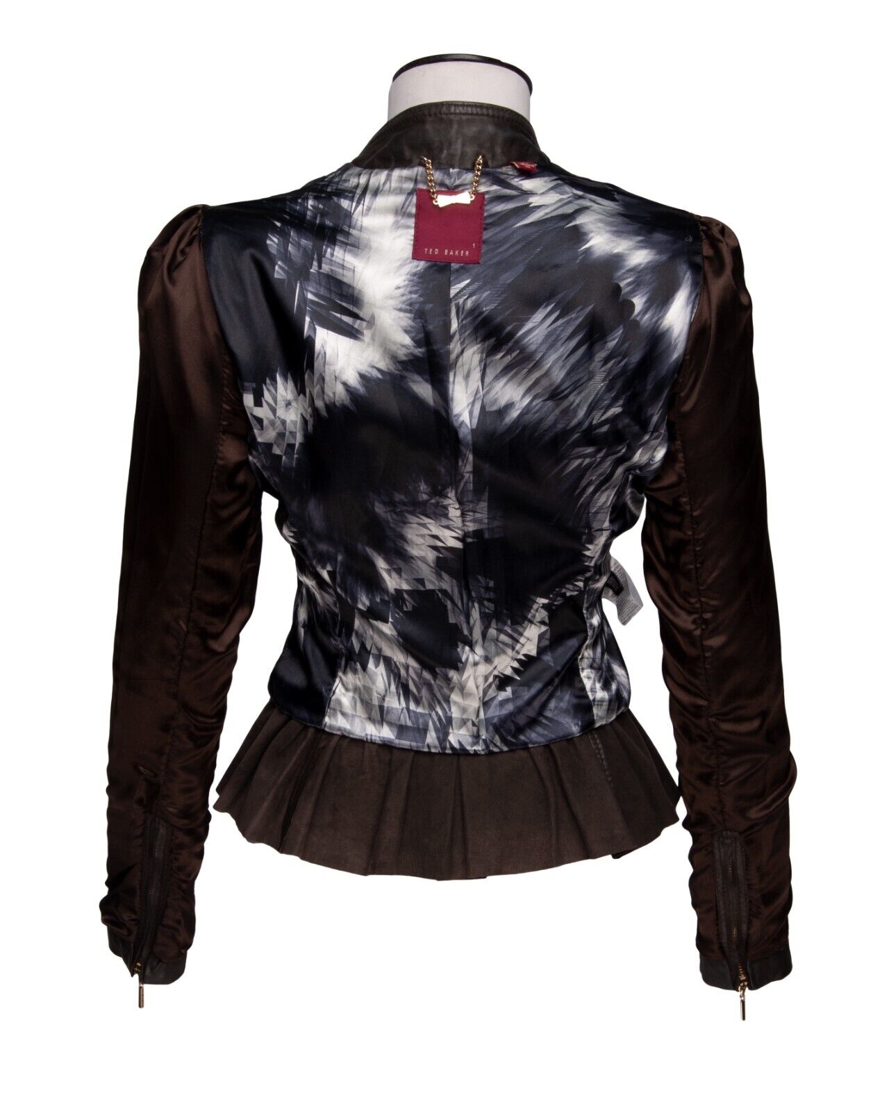 TED BAKER Jacket Brown Leather Women's Peplum Size 1 / S