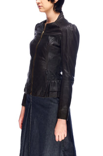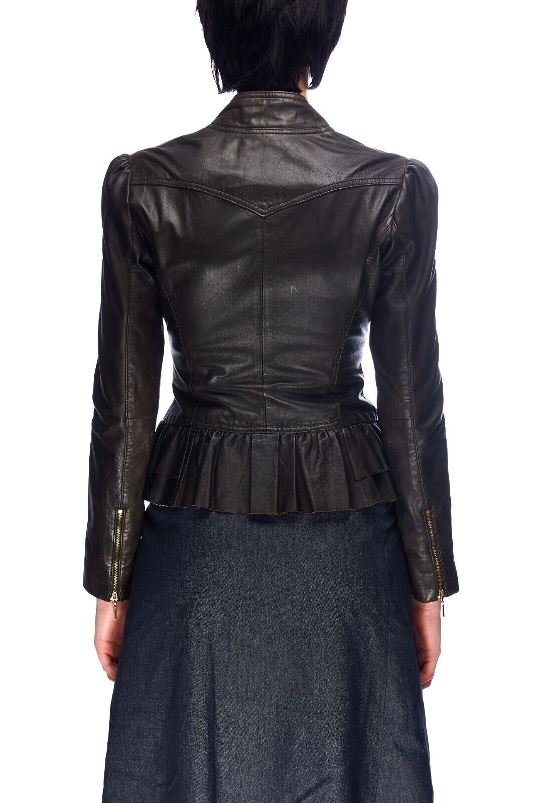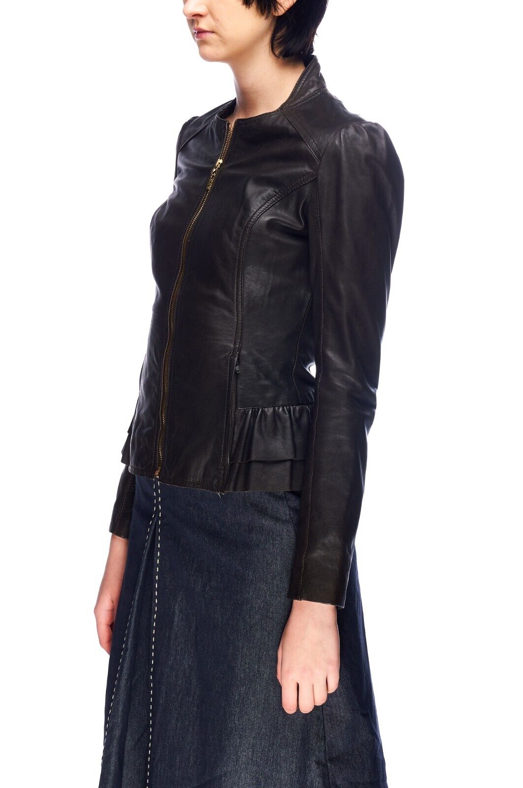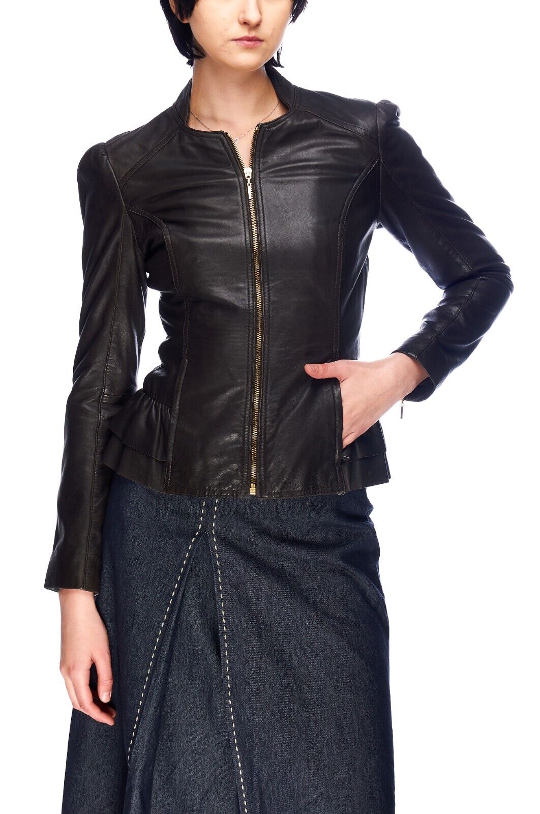 TED BAKER Jacket Brown Leather Women's Peplum Size 1 / S