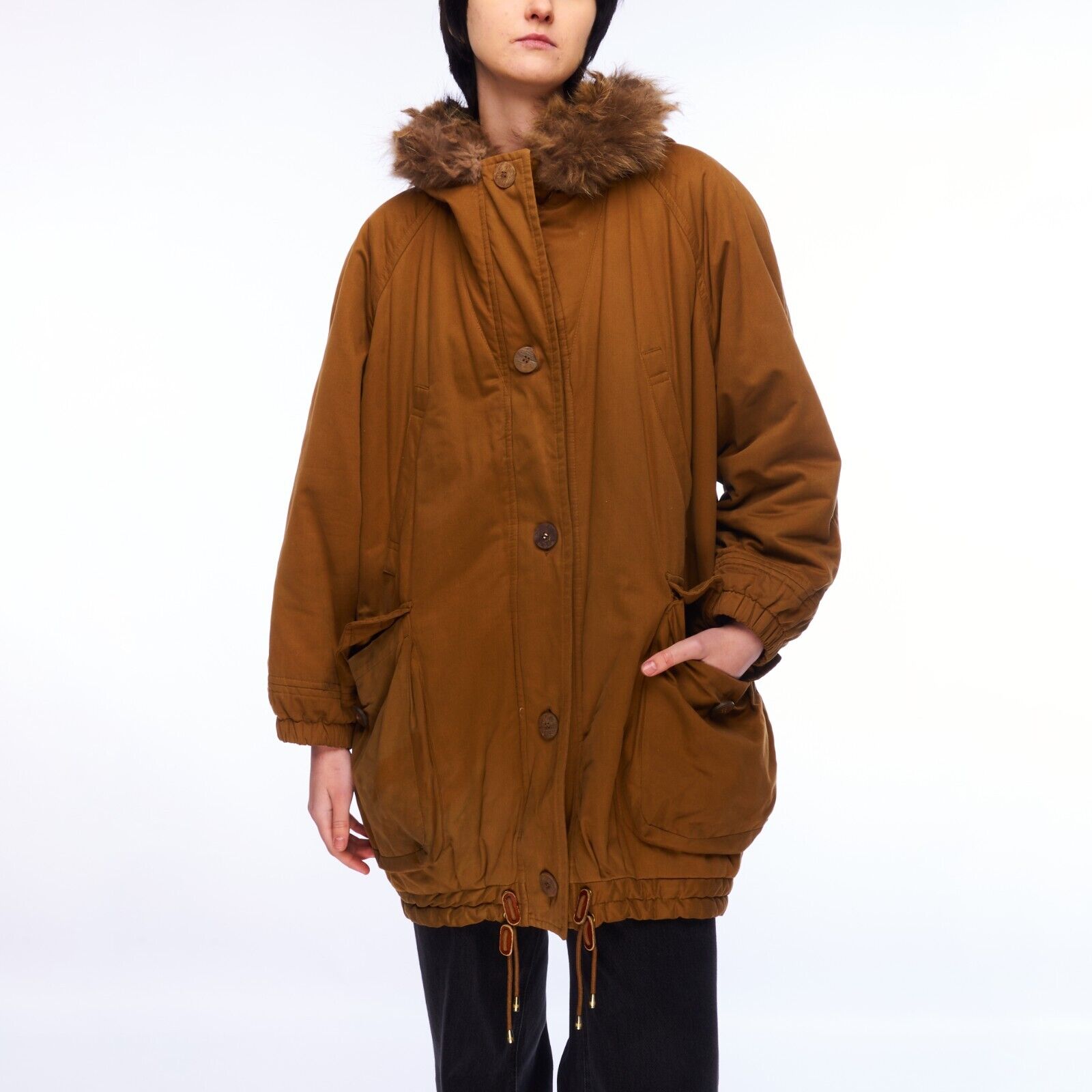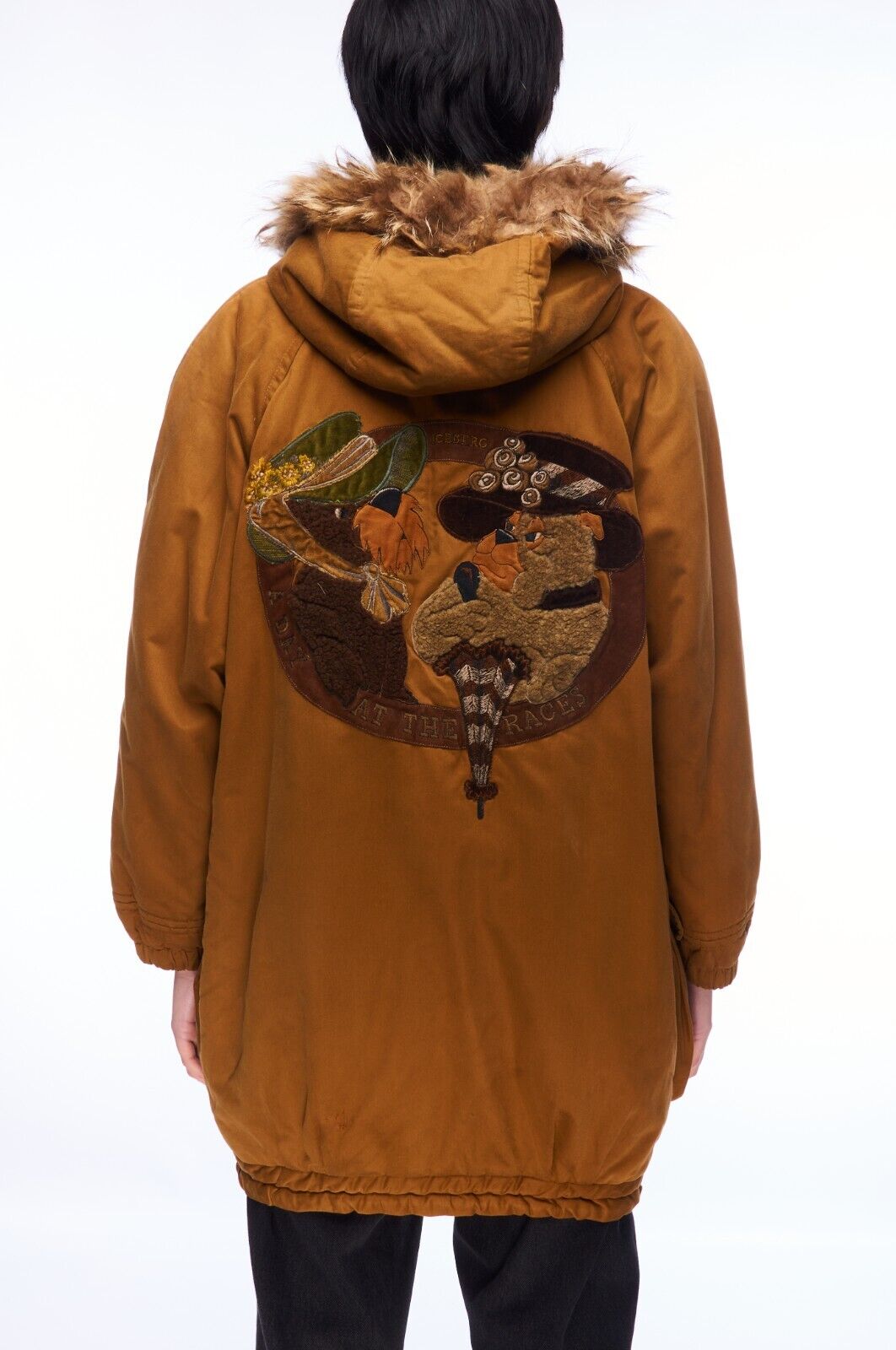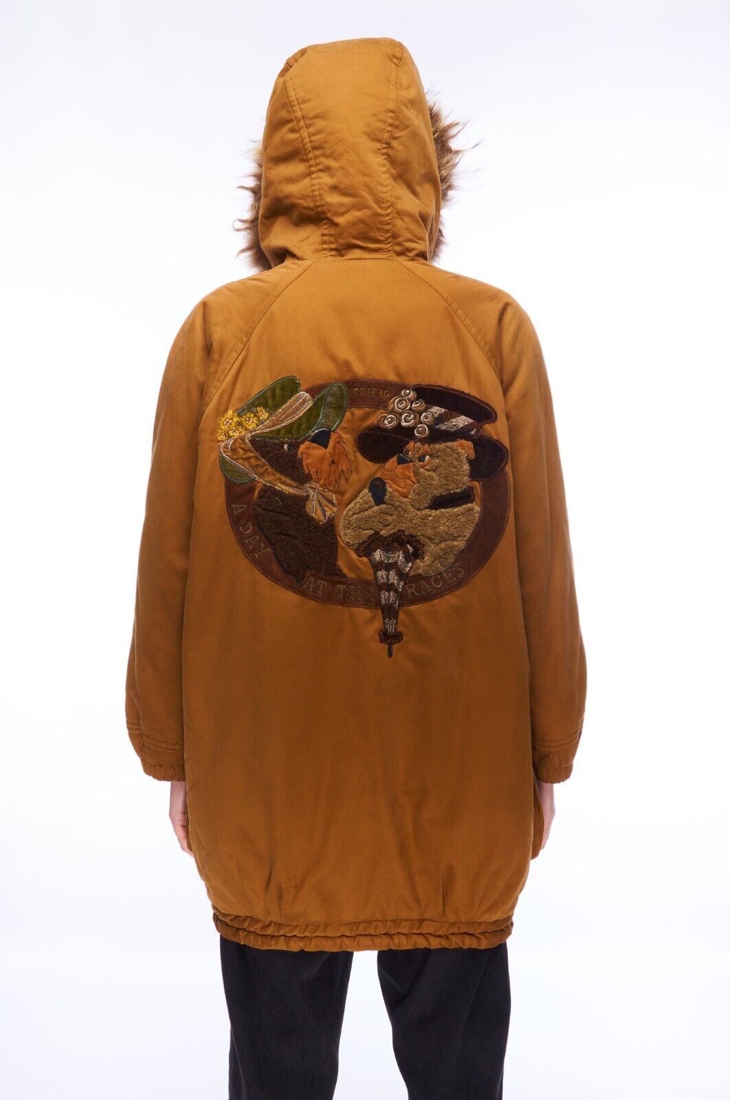 Vintage ICEBERG Hooded Jacket Brown Cotton Womens A Day At The Races Parka Sz 40