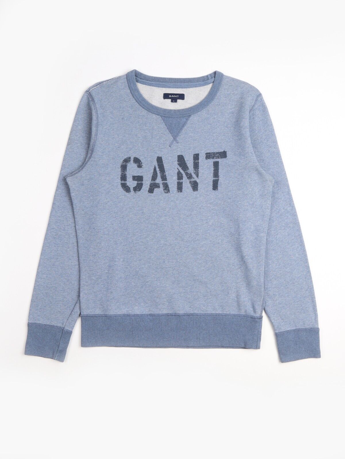 GANT Sweatshirt Blue Cotton Mens Logo Pullover Size S