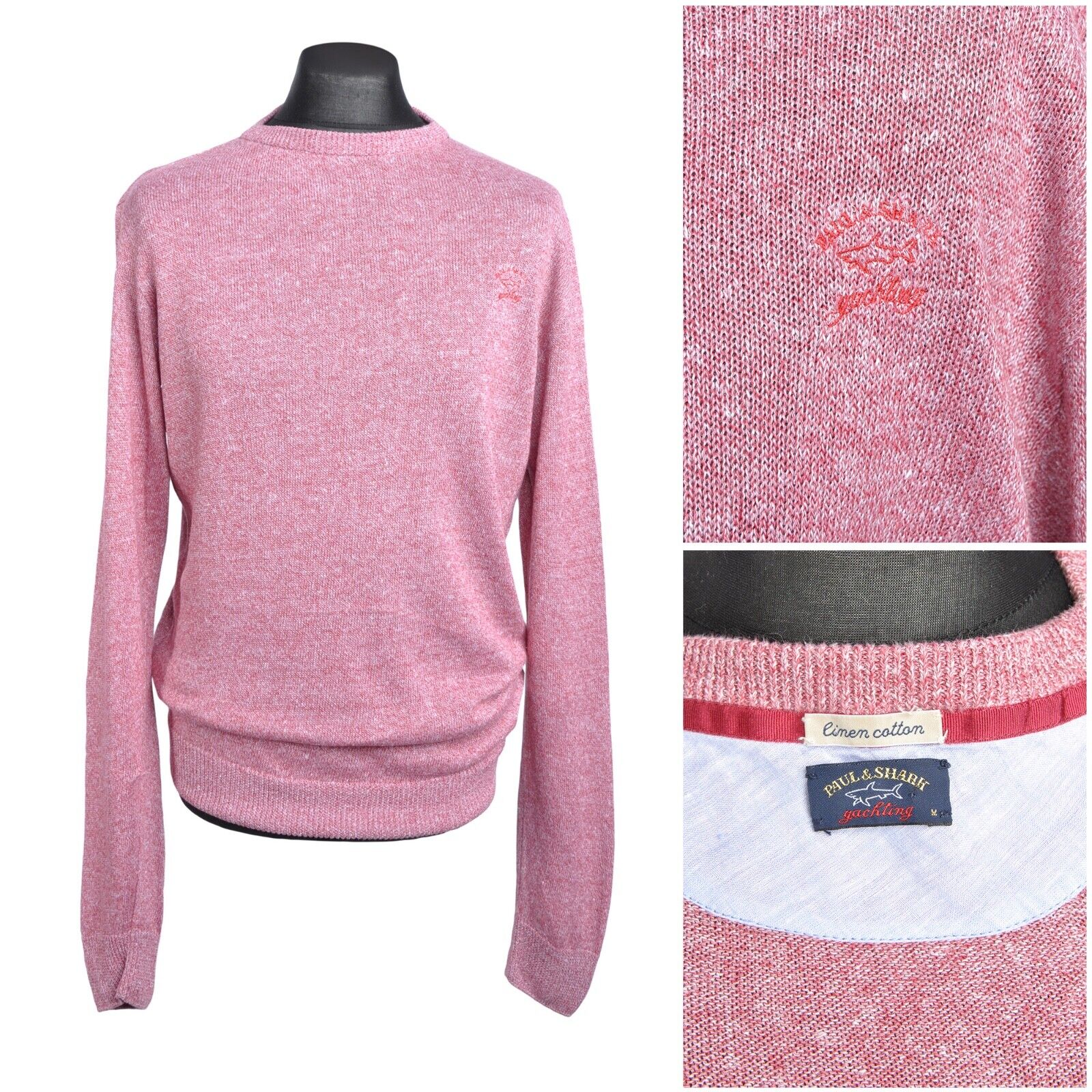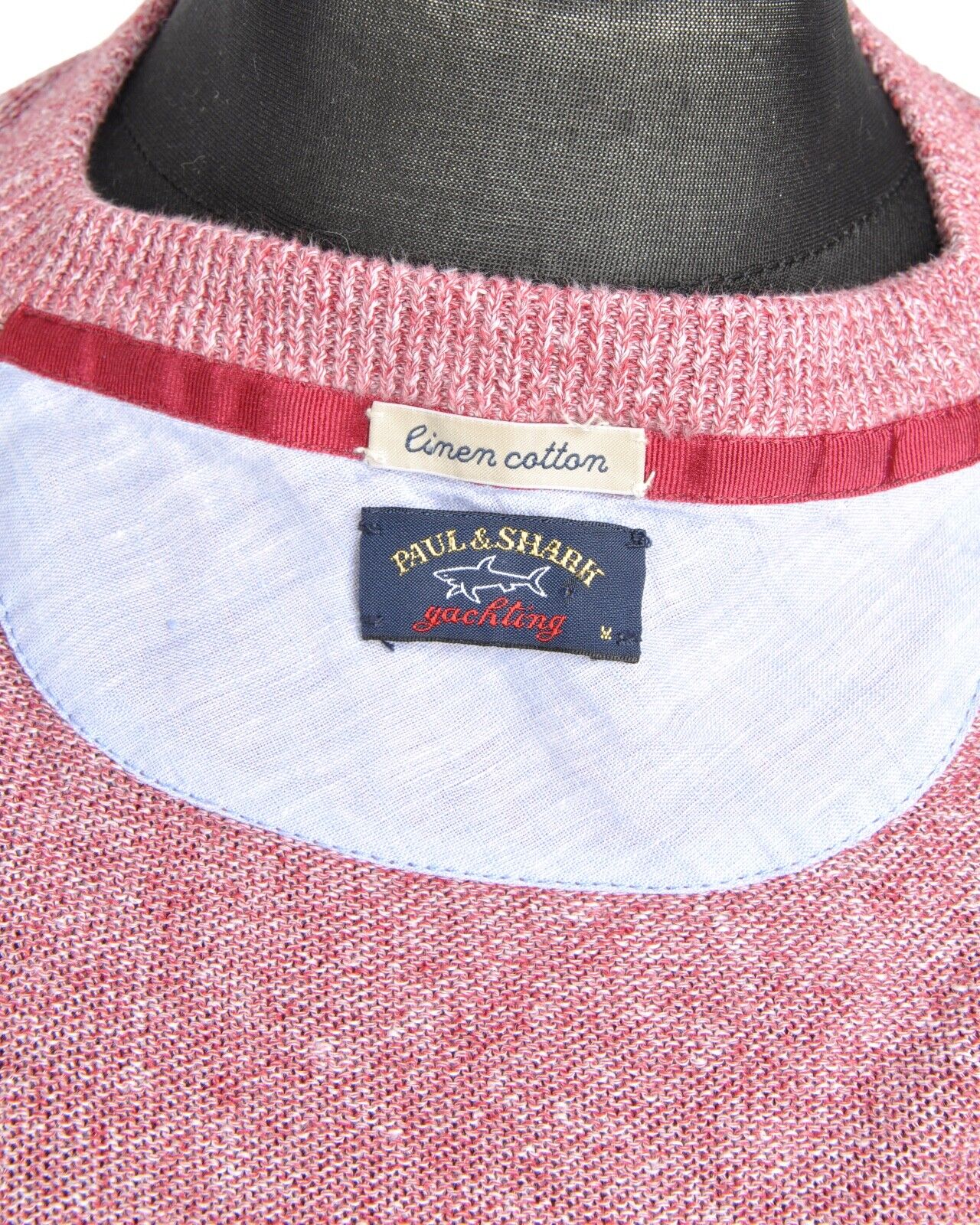PAUL & SHARK Jumper Red Melange Linen Cotton Men's Crew Neck Pullover Size M