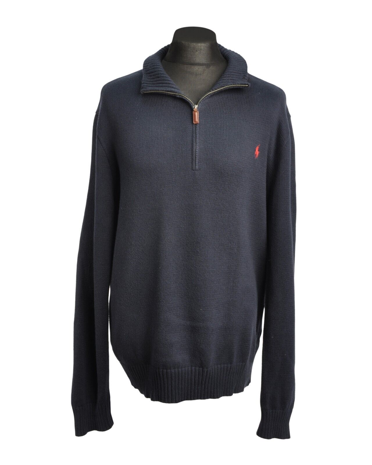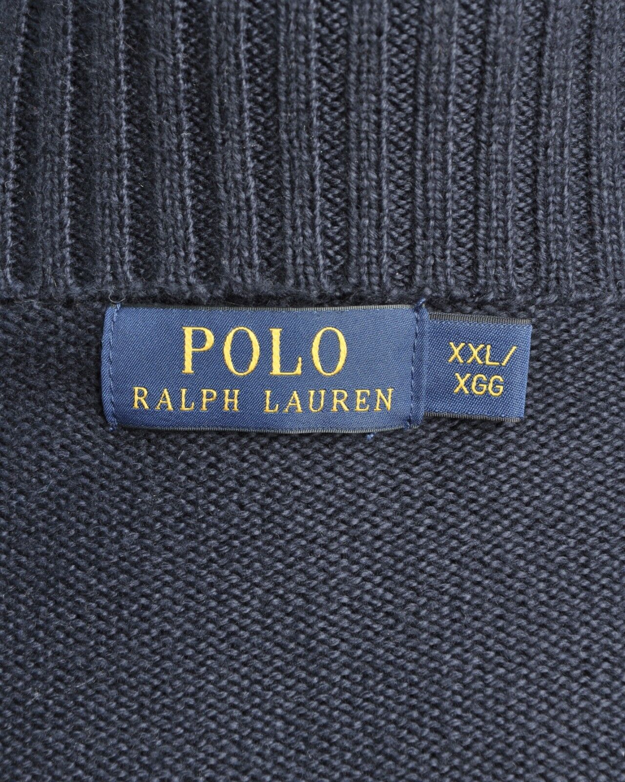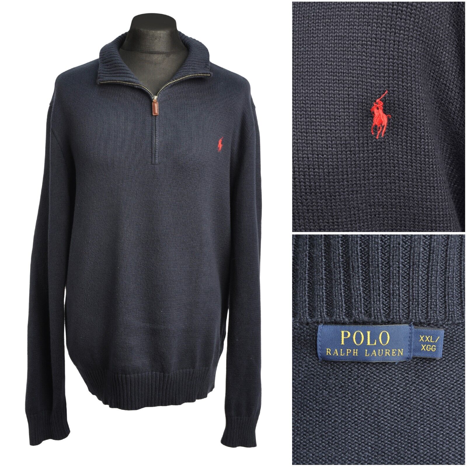POLO Ralph Lauren Jumper Navy Blue Zip Neck Cotton Men's Pullover Size XXL