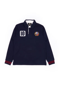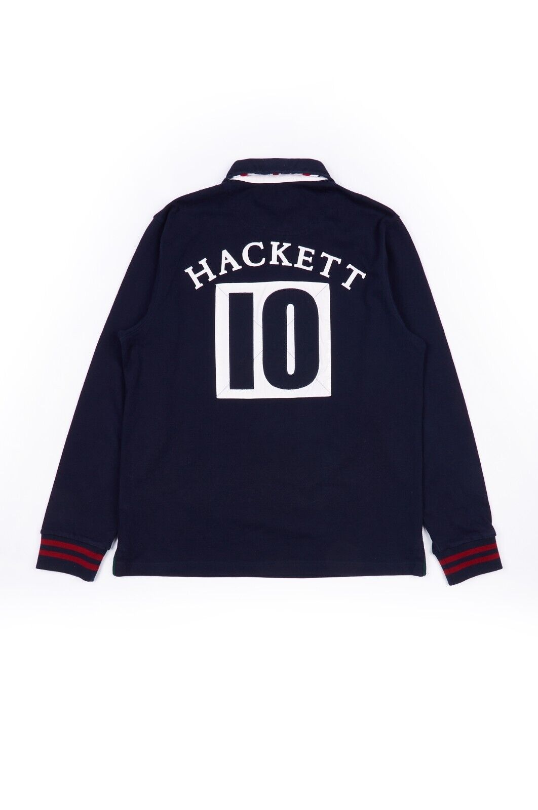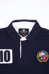 HACKETT Rugby Shirt Navy Blue Cotton Mens Longsleeve Size L