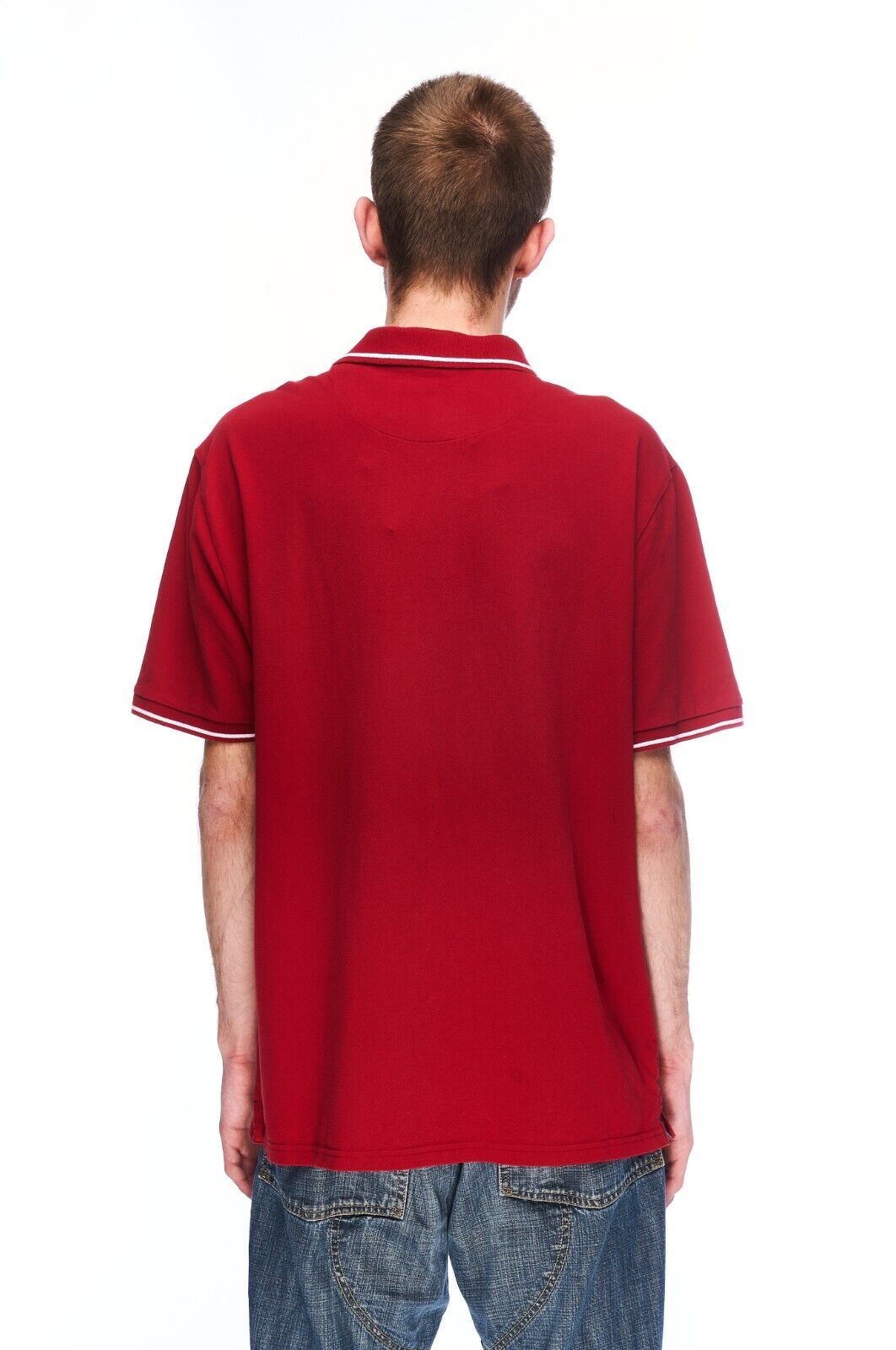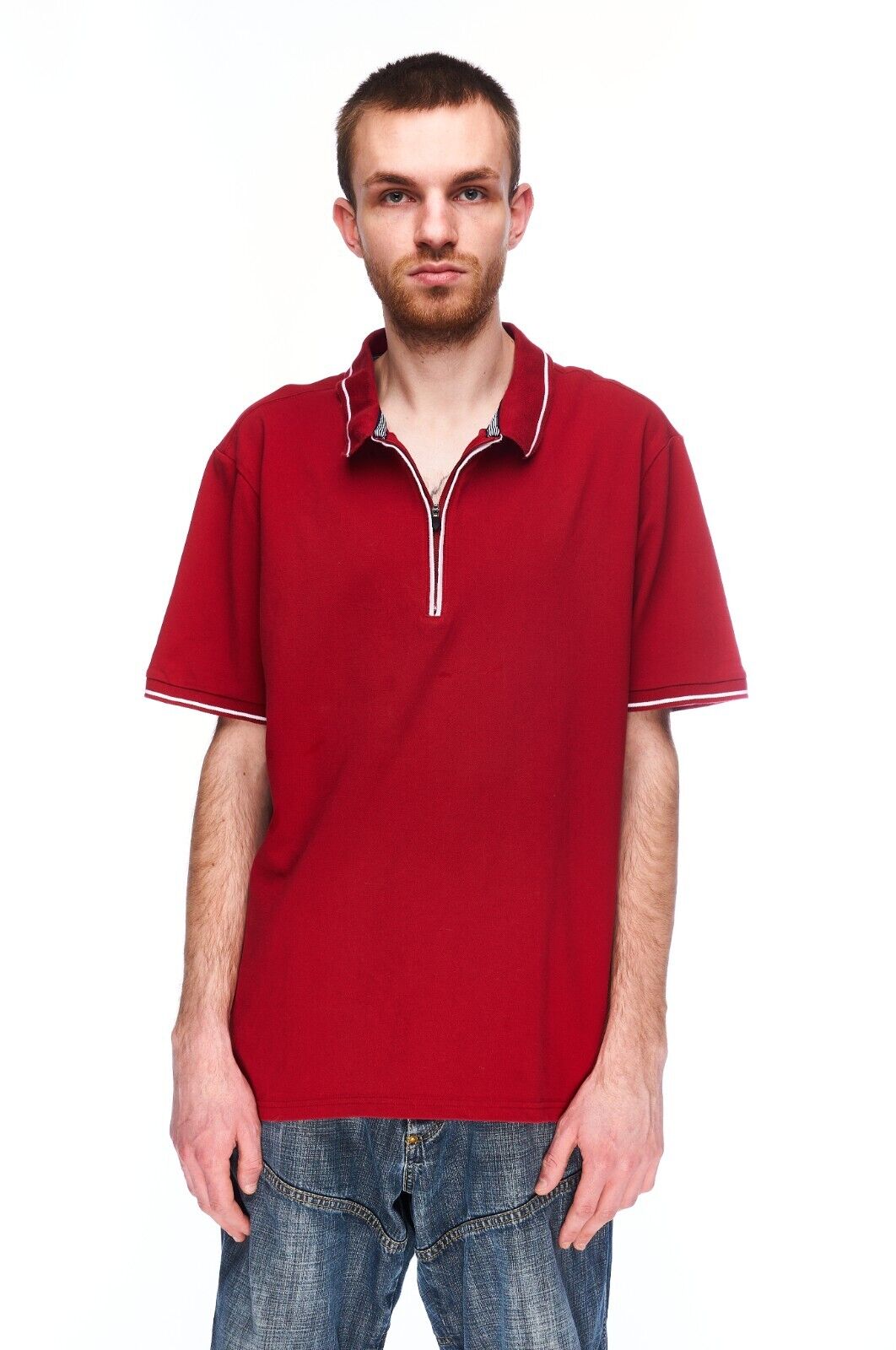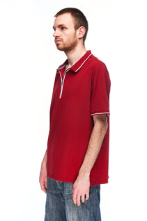 M&S Collection Zip Neck Polo Shirt Red Cotton Men's Short Sleeve Size XL