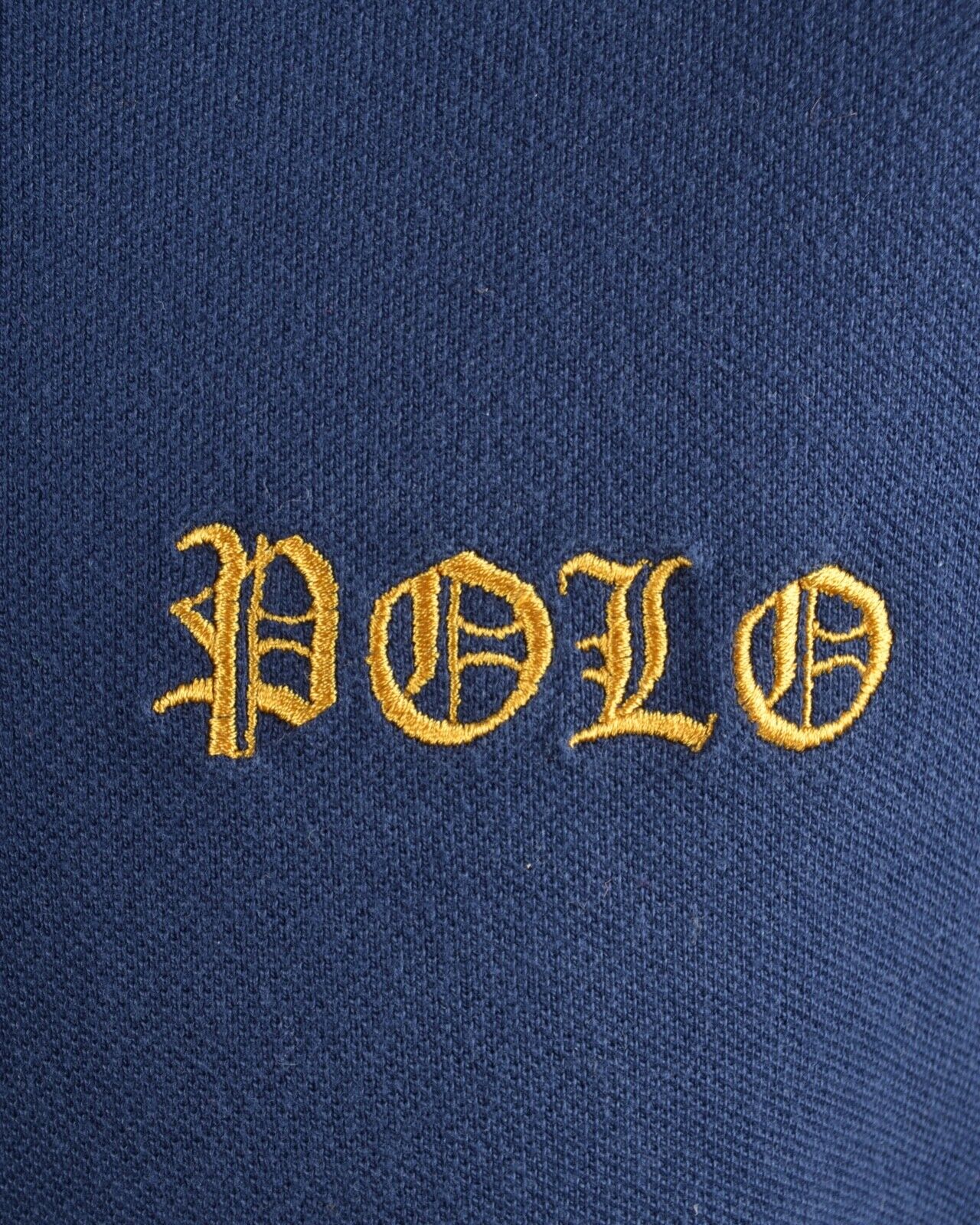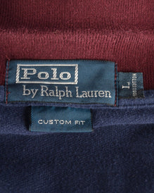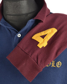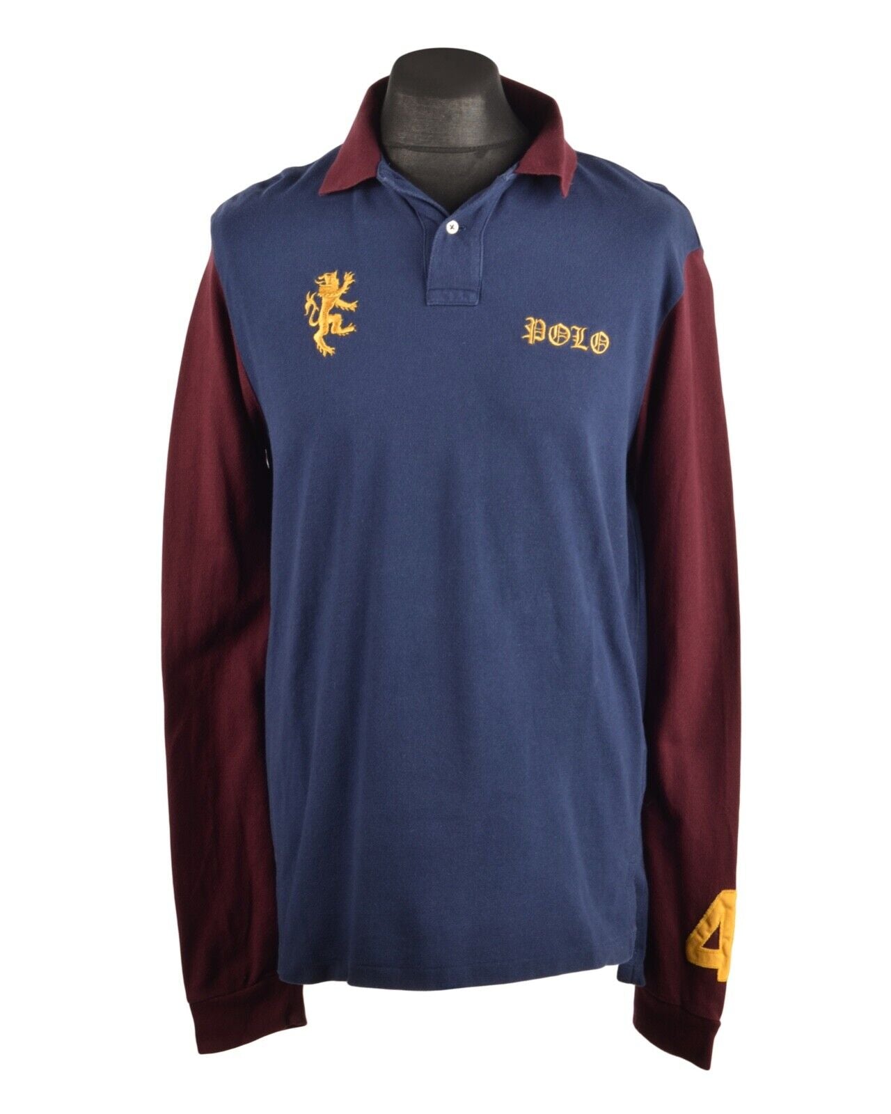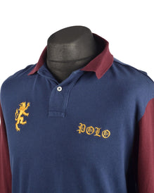 Men's POLO RALPH LAUREN Navy Blue Pique Cotton Logo Longsleeve Polo Shirt Size L