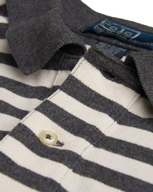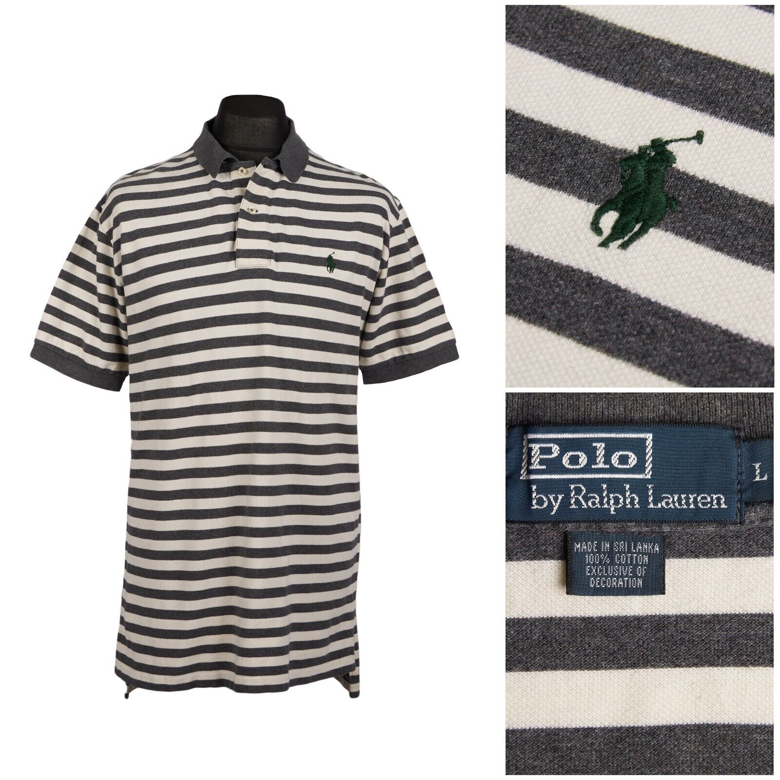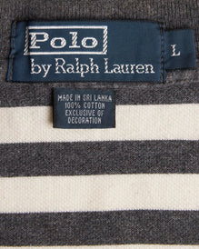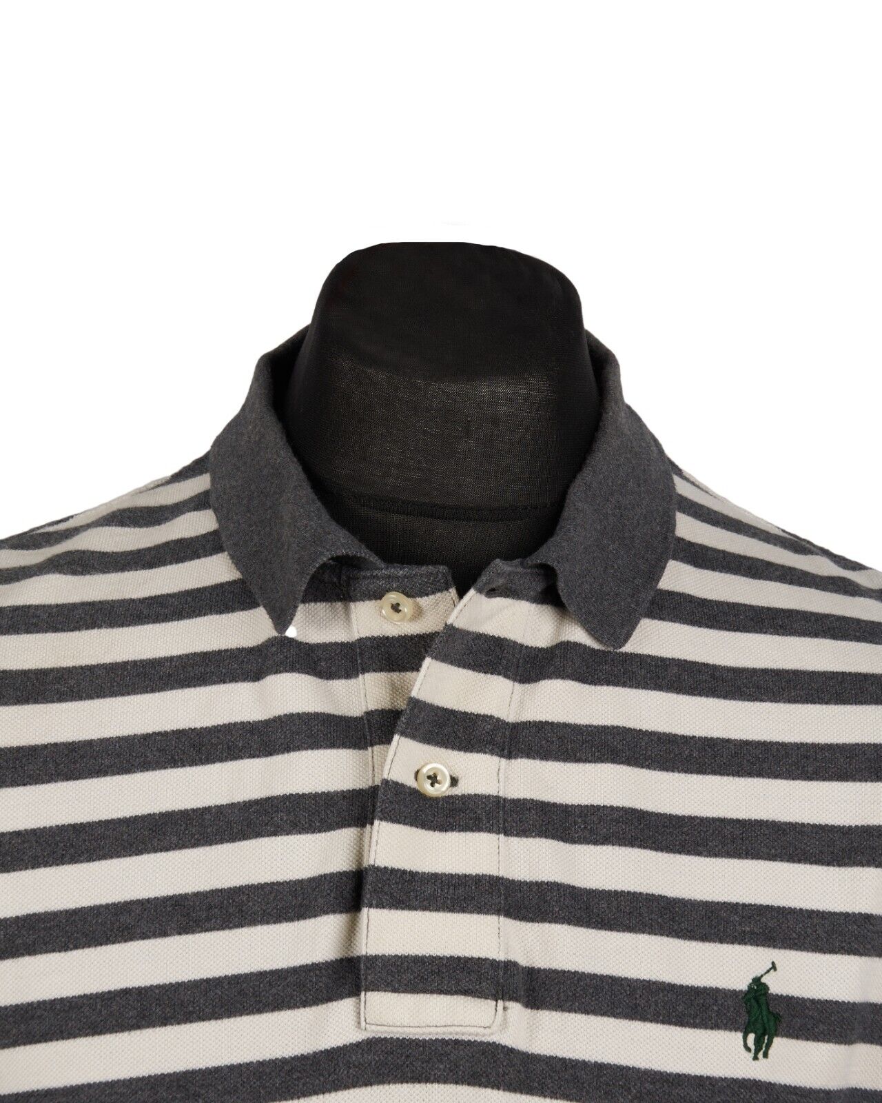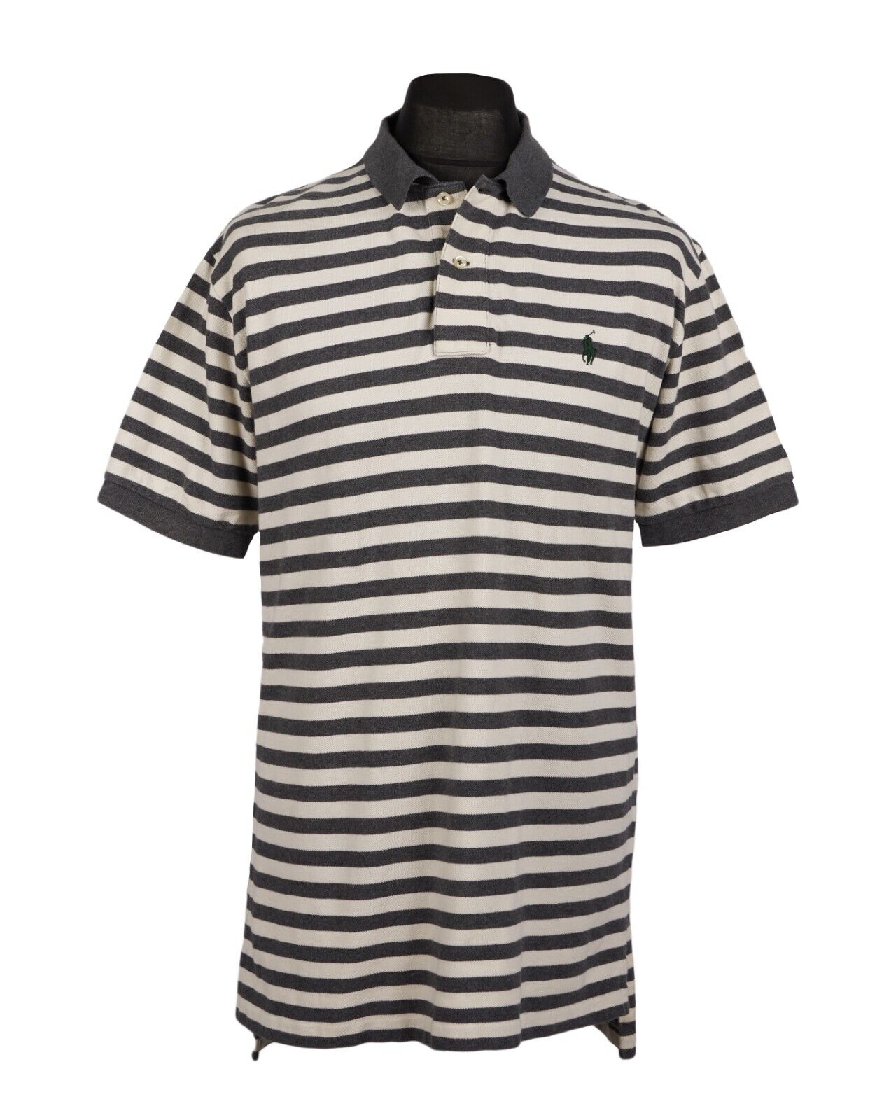 POLO RALPH LAUREN Polo Shirt White Gray Striped Cotton Mens Top Medium