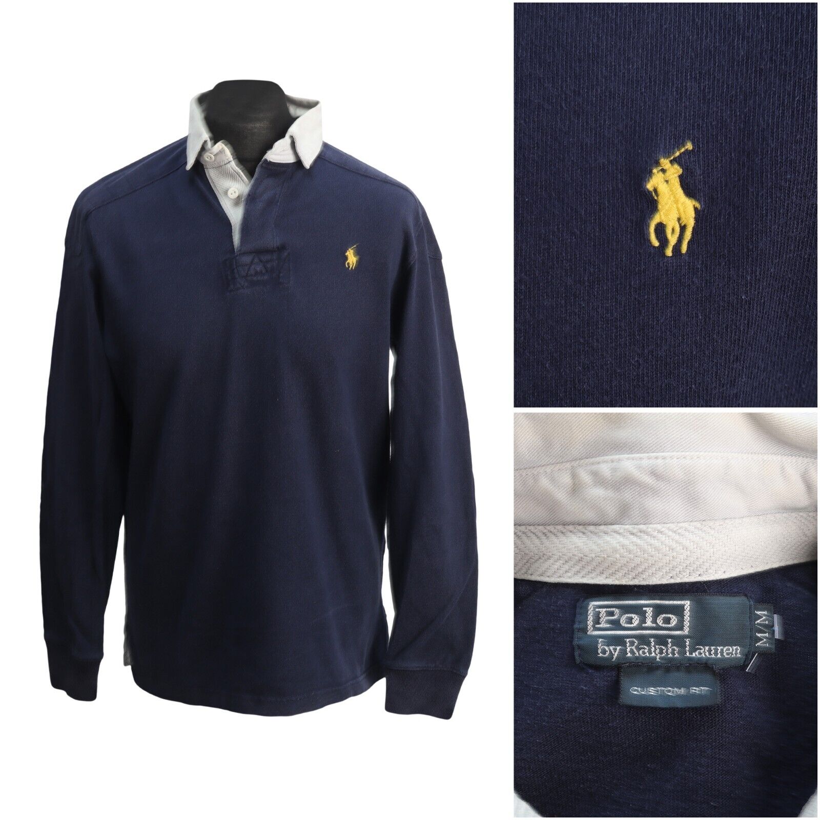 RALPH LAUREN Jumper Navy Blue Long Sleeve Polo Neck Men's Custom Fit Size M