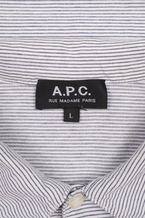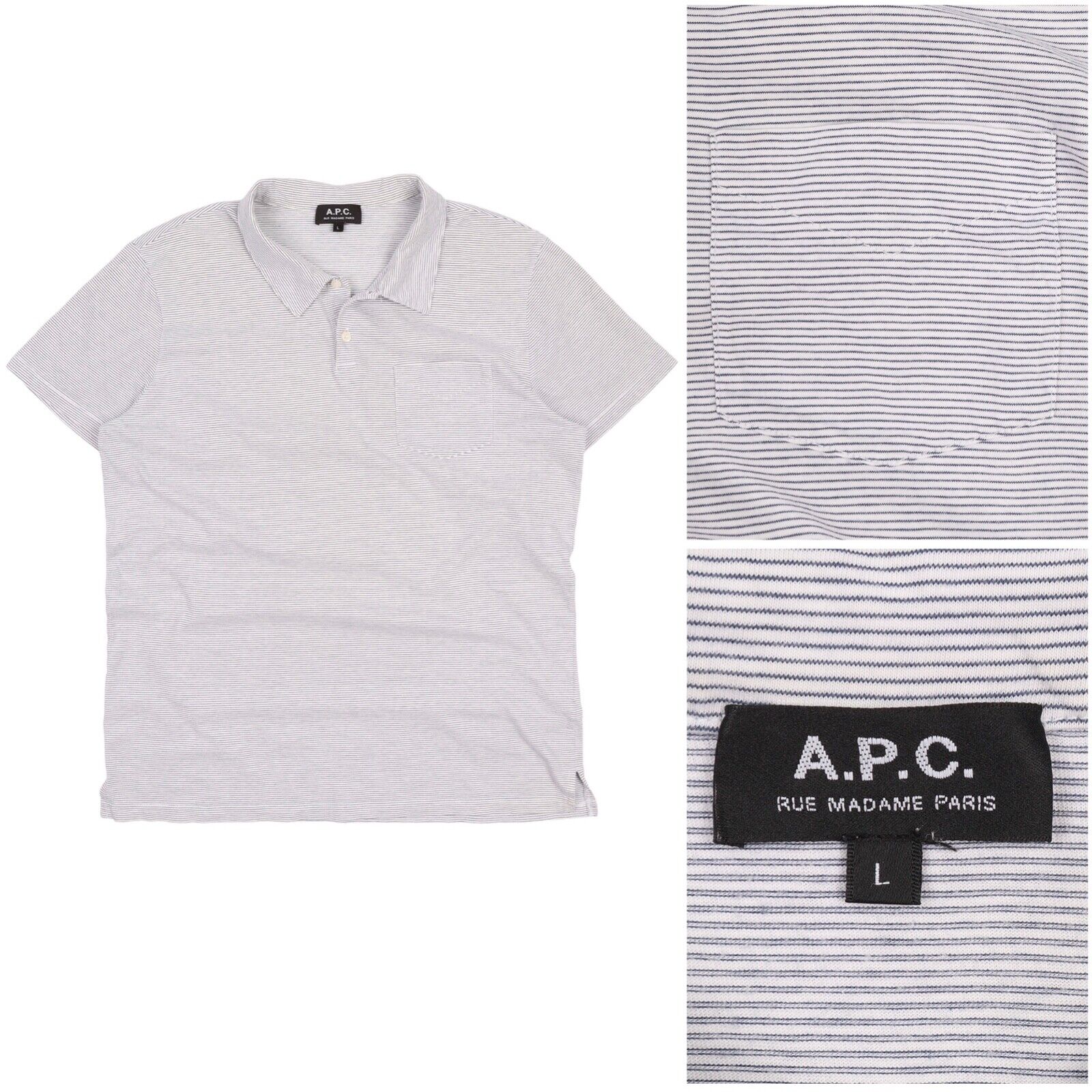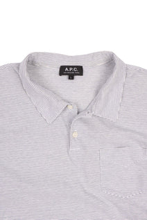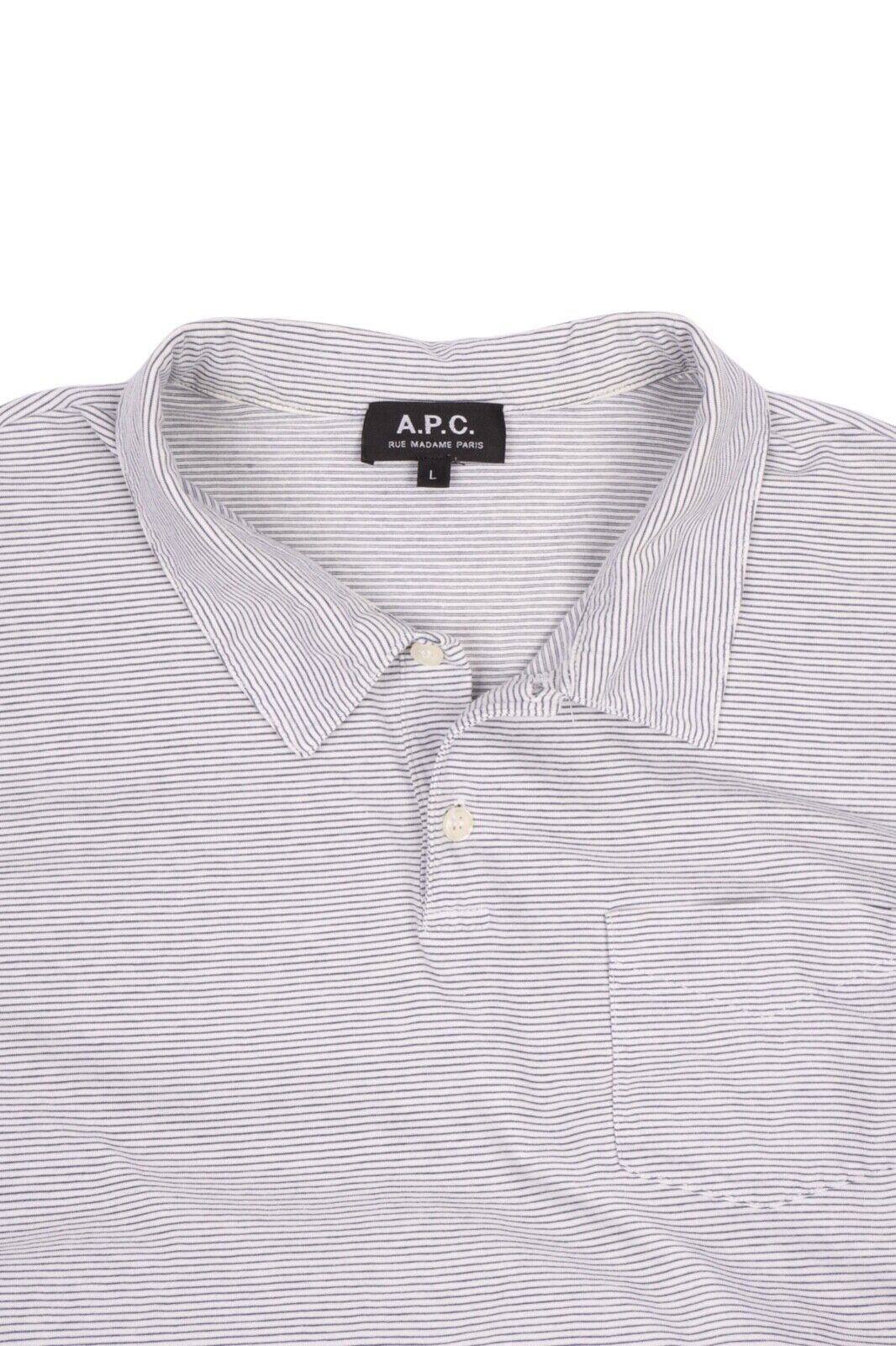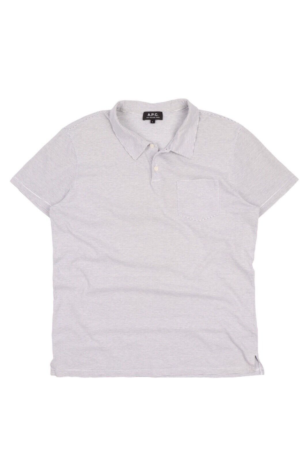Men's A.P.C. Grey Striped Polo Shirt Size L