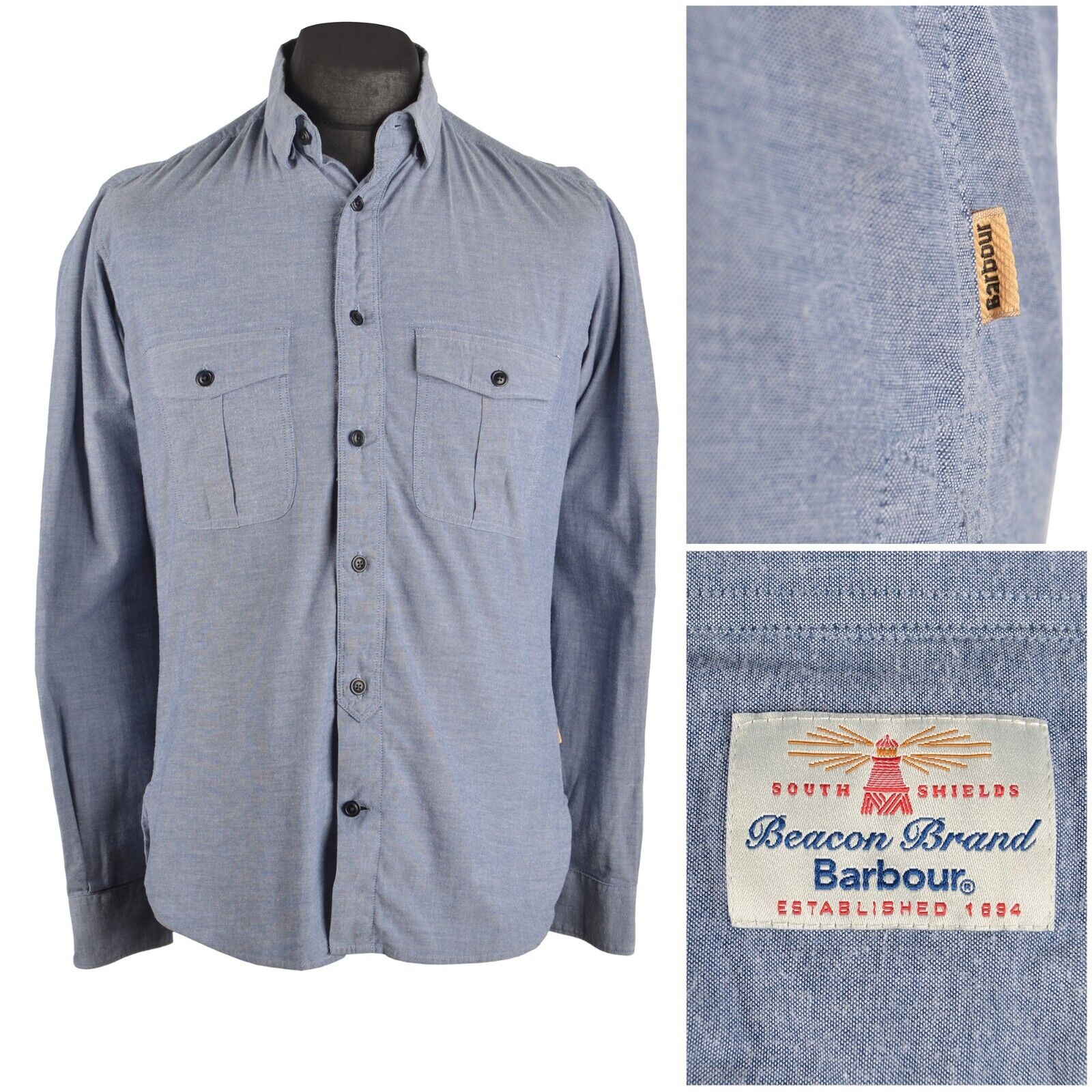 Men's BARBOUR Blue Cotton Long Sleeve Pocket Shirt Size S