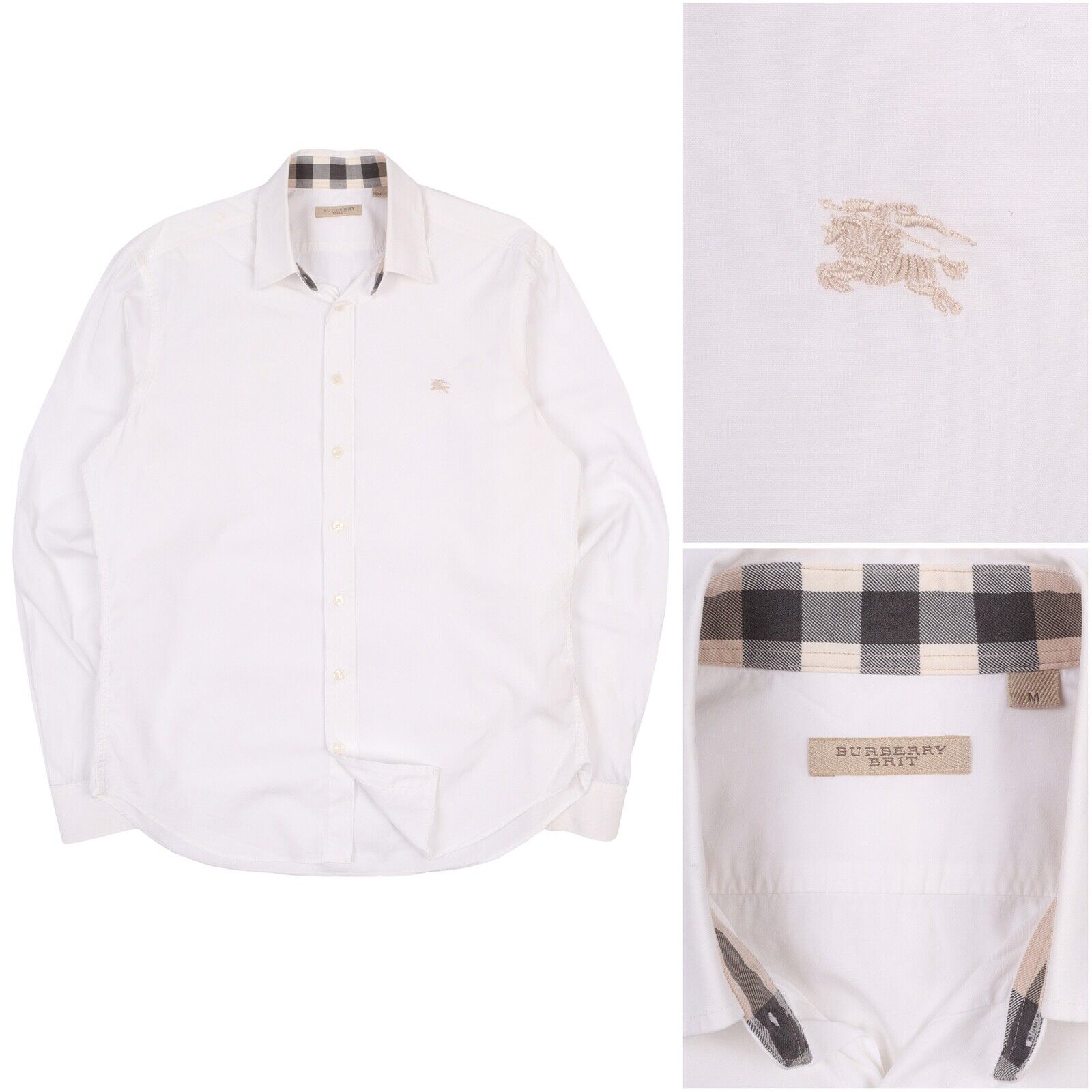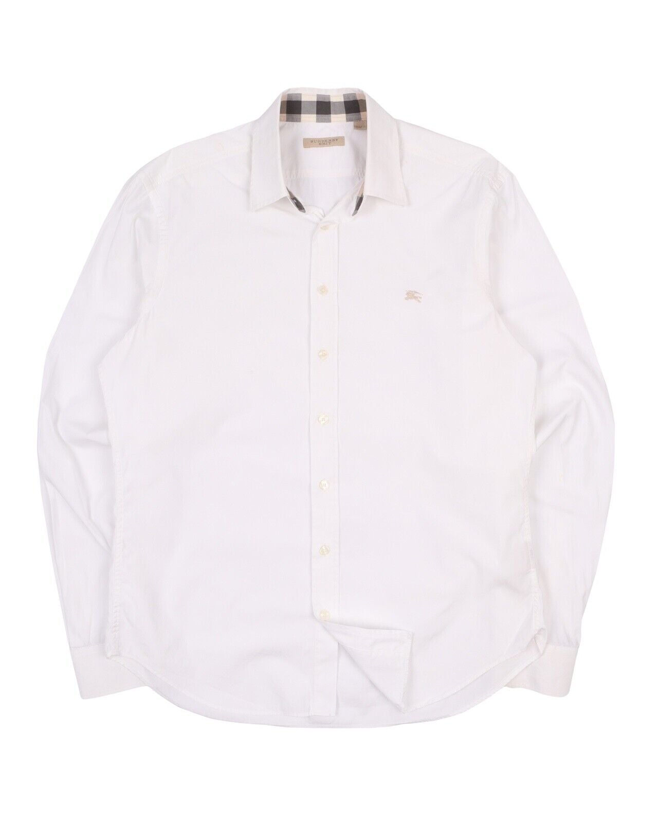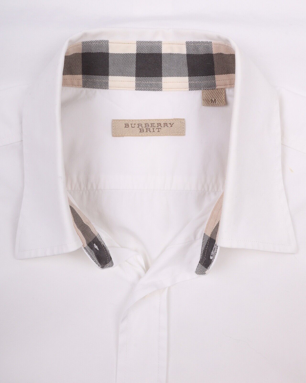 Men's BURBERRY Brit Nova Check Details White Cotton Shirt Size M
