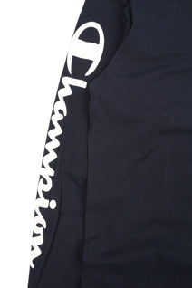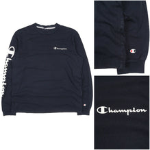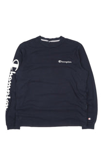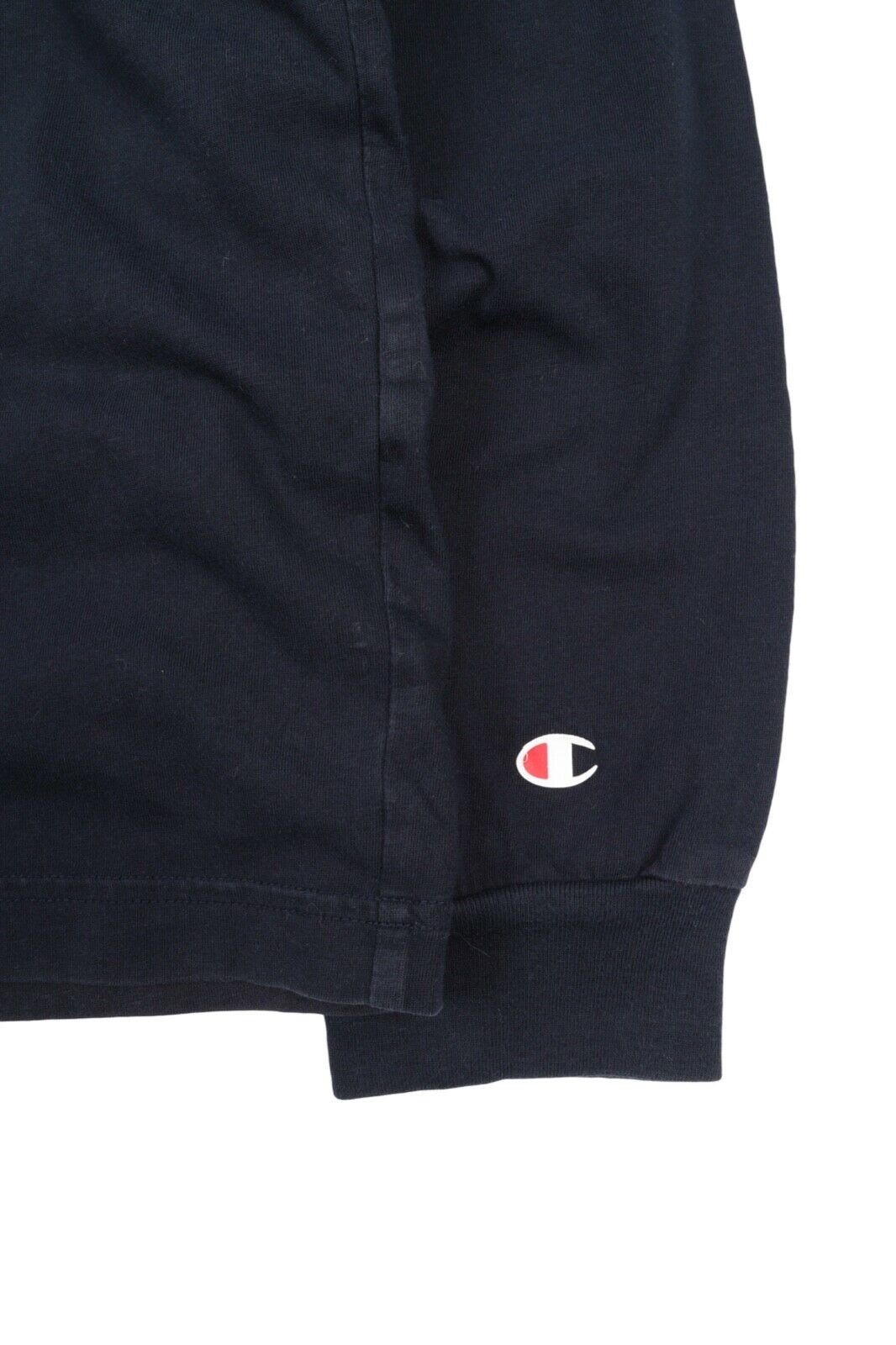 Men's CHAMPION Navy Blue Cotton Crew Neck Longsleeve Logo T Shirt Size ~ M