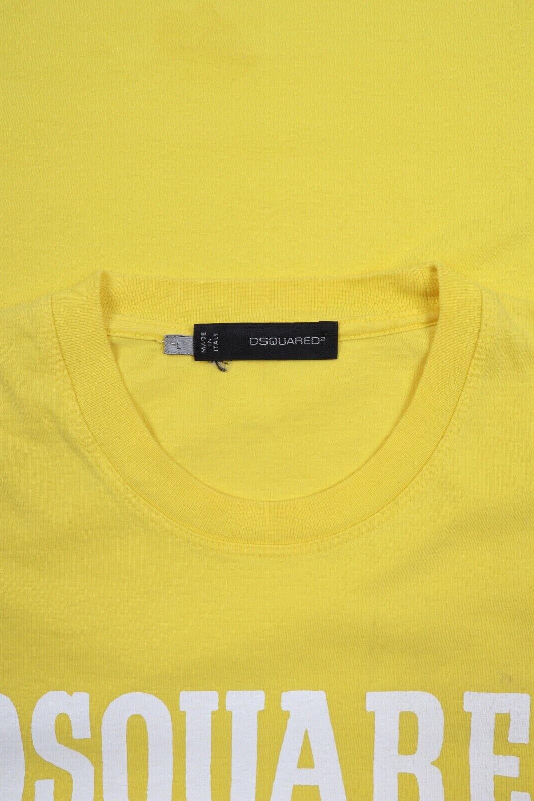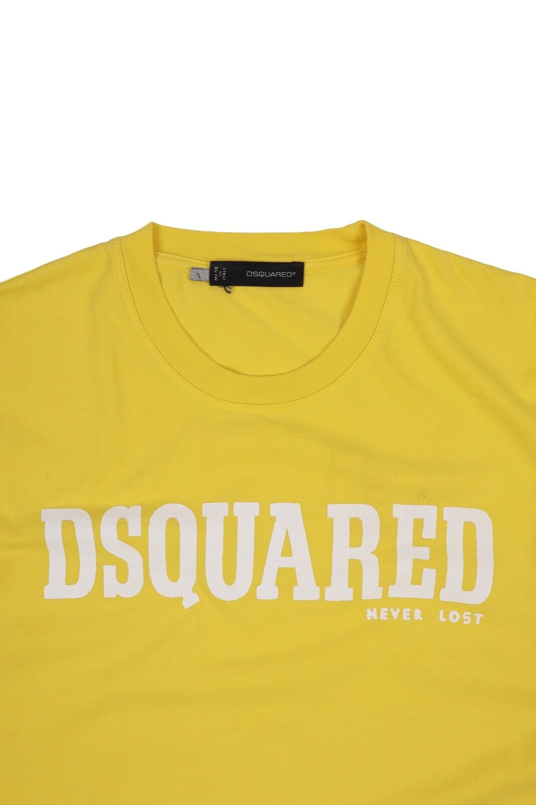 Men's DSQUARED2 Yellow Cotton Short Sleeve Logo T Shirt Size M