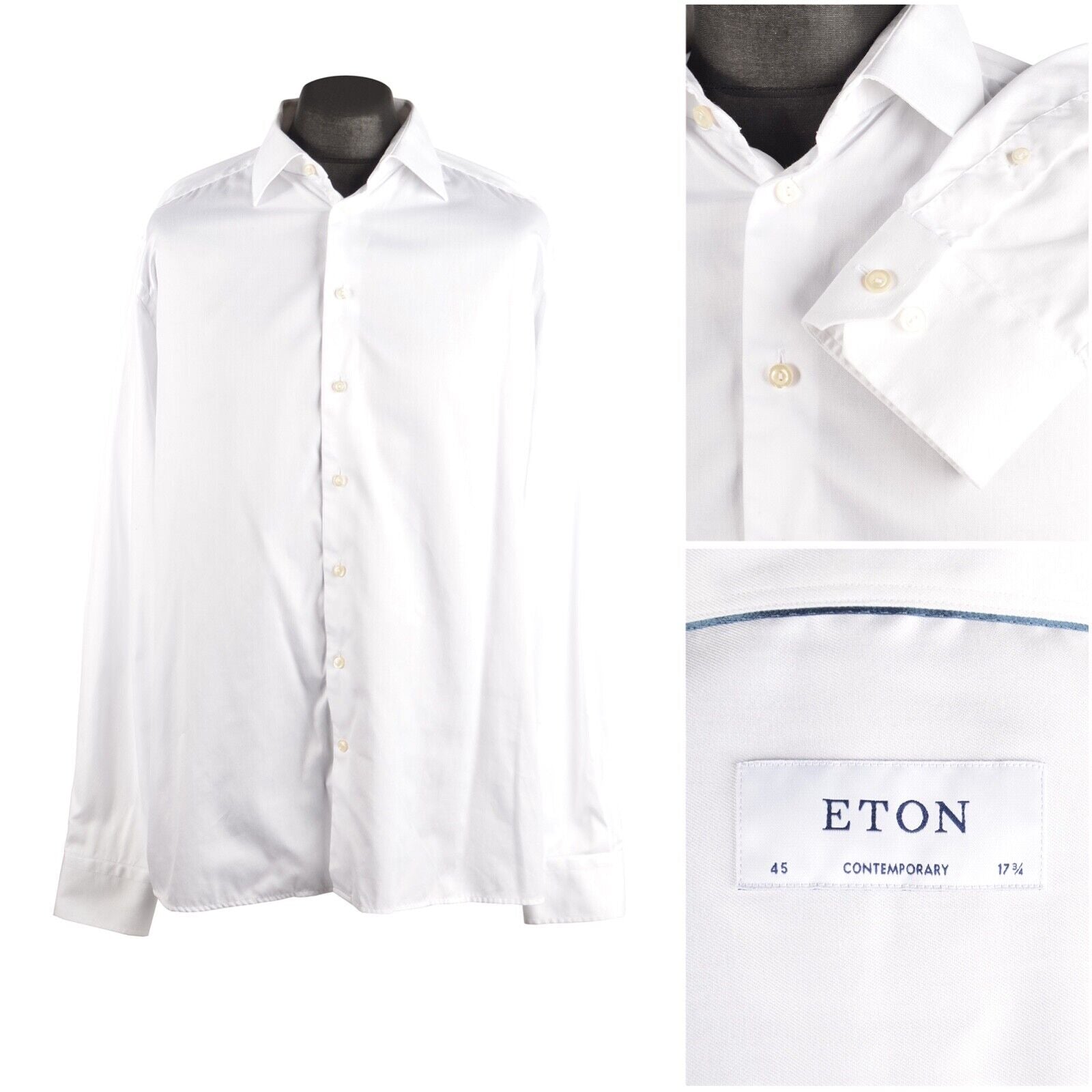 Men's ETON White Cotton Contemporary Fit Shirt Size 45 / 17.75