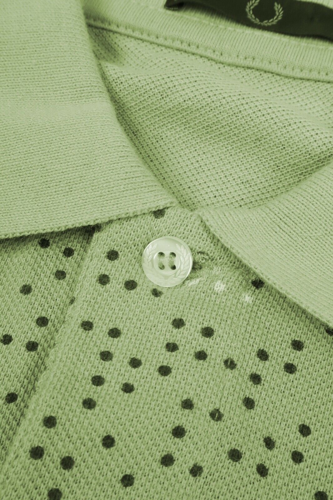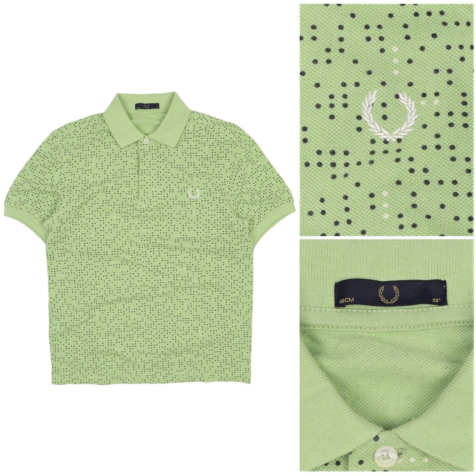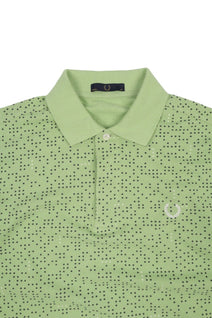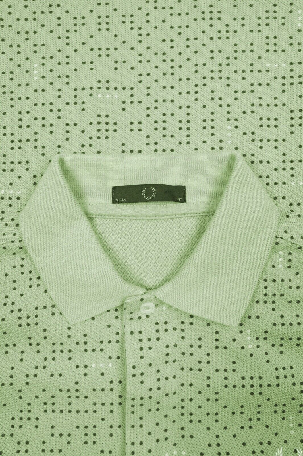 Men's FRED PERRY Green Dotted Pique Cotton Short Sleeve Polo Shirt Size 38