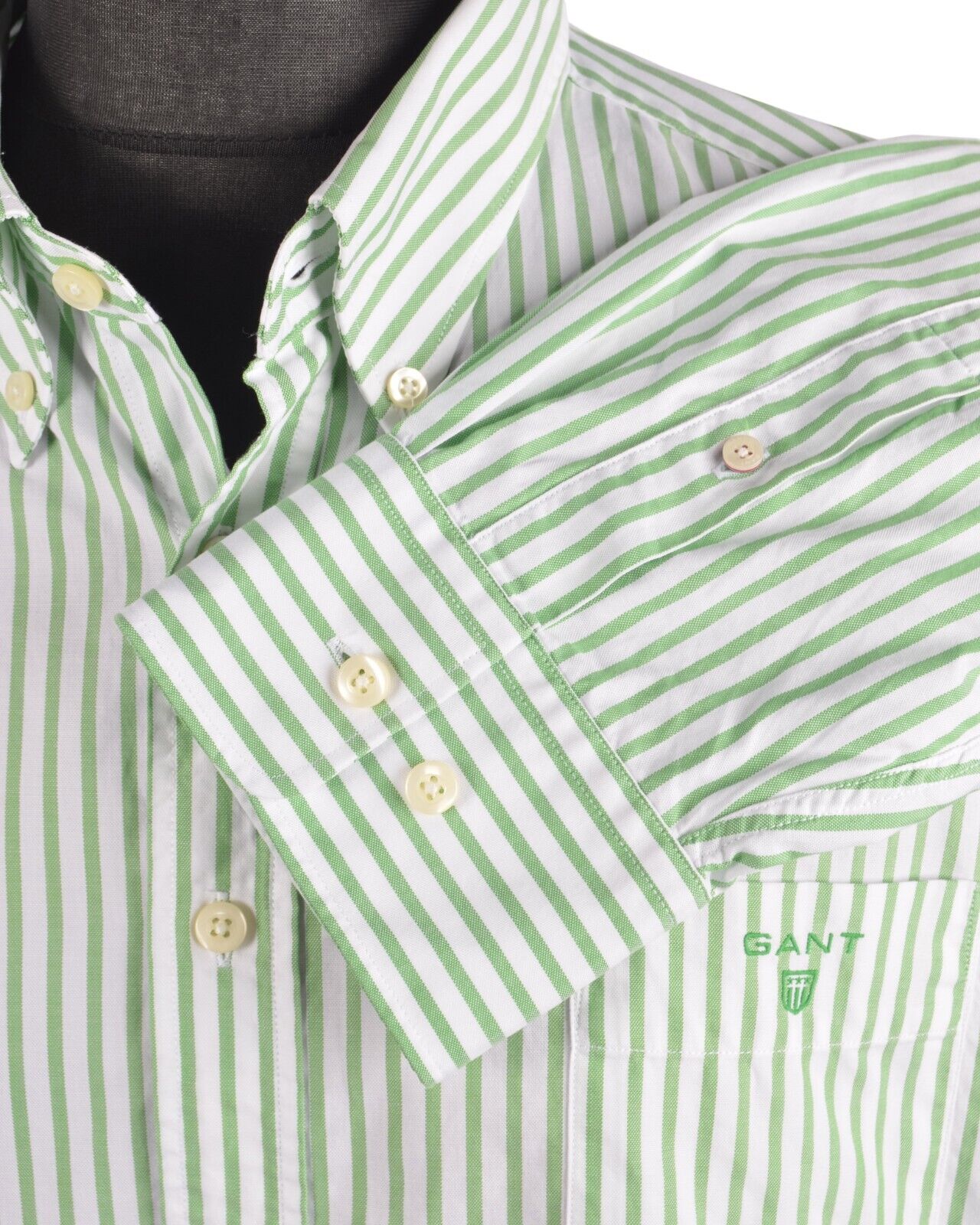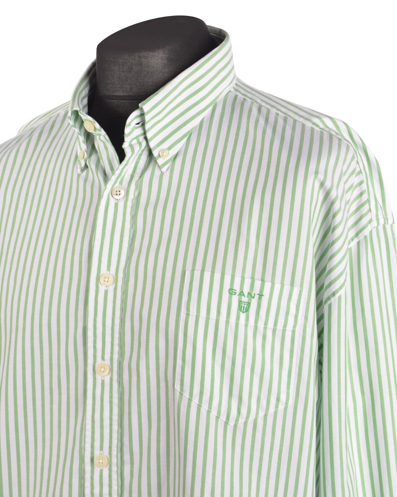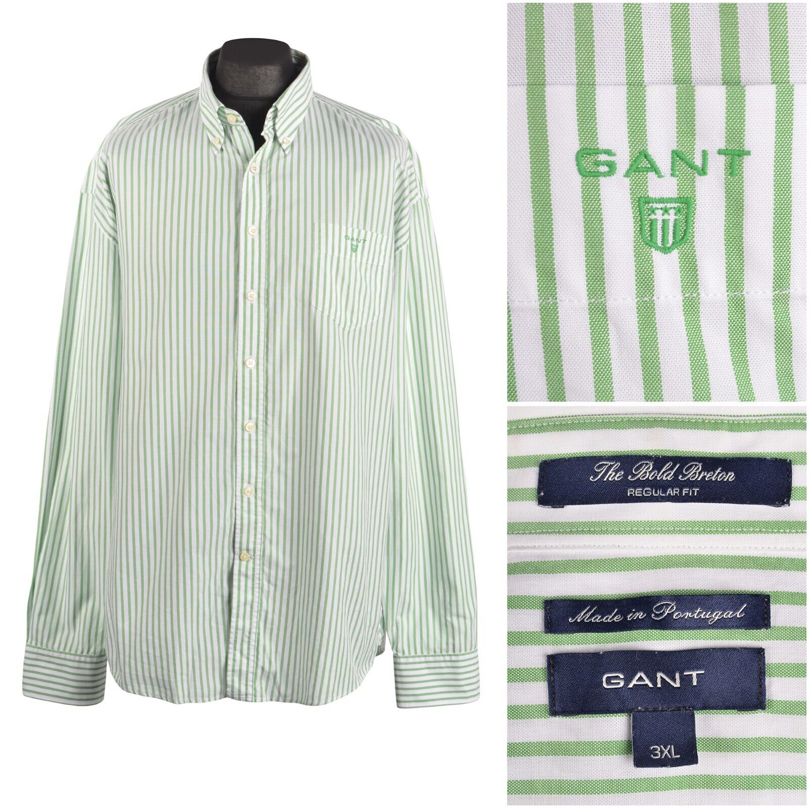 Men's GANT Green Cotton Striped The Bold Breton Regular Fit Shirt Size 3XL