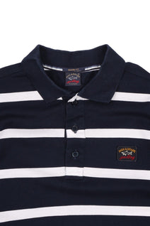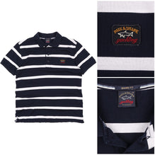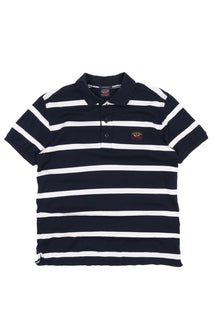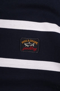 Men's PAUL & SHARK Navy Blue Striped Pique Cotton Short Sleeve Polo Shirt Size M