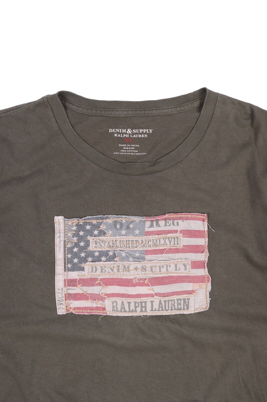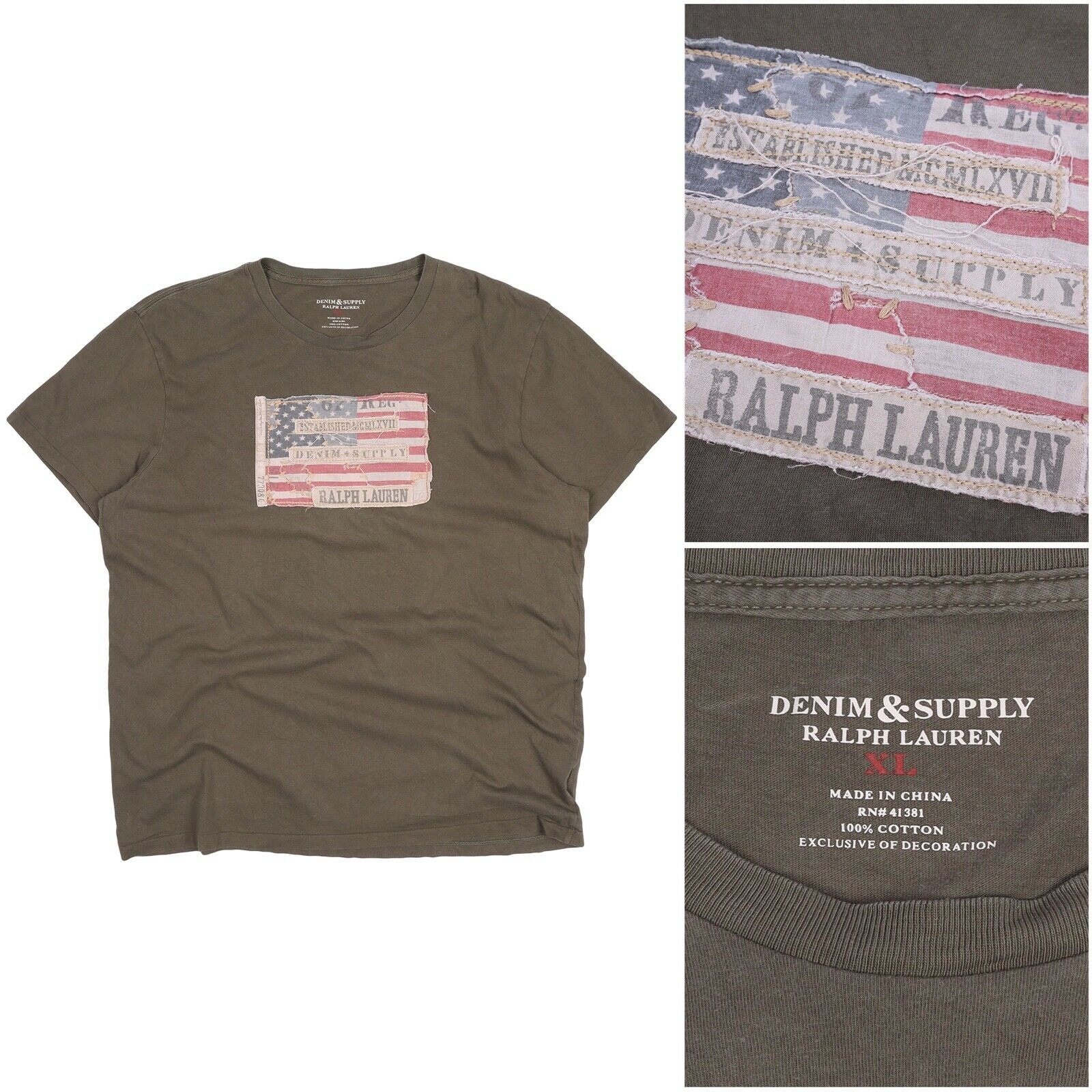 Men's Ralph Lauren DENIM SUPPLY Olive Green Cotton Short Sleeve Flag T Shirt Size XL For any further information on this item please contact us and we will be glad to assist you. Your order will be dispatched within 1 working day after payment received (Monday-Friday). Standard delivery time is 5-18 days (depending on destination country). Please note that international parcels are subject to random customs checks that could affect delivery time. You may always contact us for updates on delivery as well as to return your purchase within 30 days. Happy bidding! Customers from UK and soon from EU, please note that you might be charged extra 20% fee on top of the price due to new VAT regulations, we can’t affect that as eBay collects these fees automatically. EXTRA FEES MIGHT BE CHARGED BAS