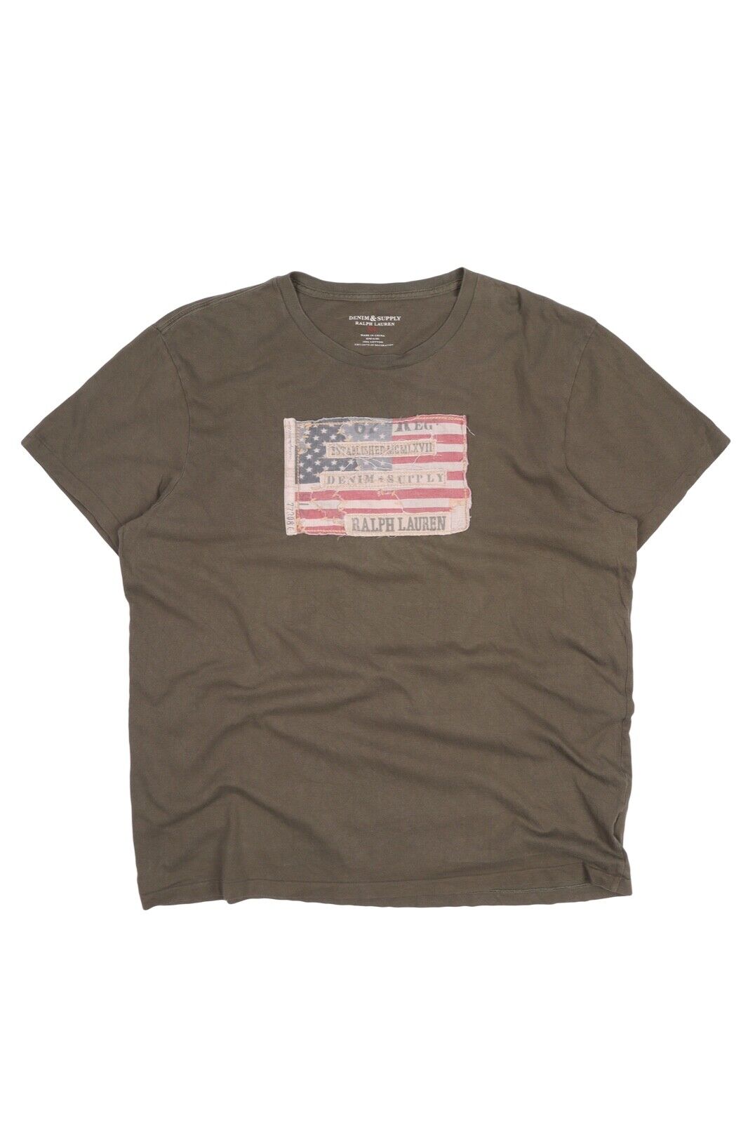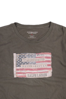 Men's Ralph Lauren DENIM SUPPLY Olive Green Cotton Short Sleeve Flag T Shirt Size XL