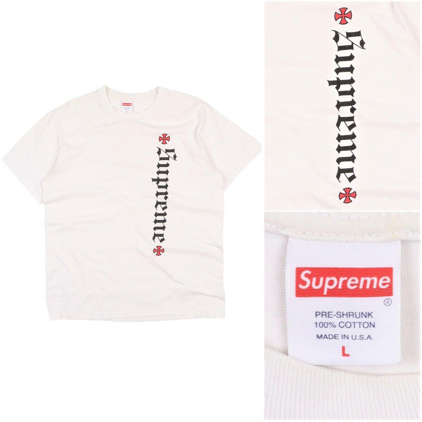 Men's SUPREME x INDEPENDENT White Cotton Big Logo Skate T-Shirt Tee Size L For any further information on this item please contact us and we will be glad to assist you. Your order will be dispatched within 1 working day after payment received (Monday-Friday). Standard delivery time is 5-18 days (depending on destination country). Please note that international parcels are subject to random customs checks that could affect delivery time. You may always contact us for updates on delivery as well as to return your purchase within 30 days. Happy bidding! Customers from UK and soon from EU, please note that you might be charged extra 20% fee on top of the price due to new VAT regulations, we can’t affect that as eBay collects these fees automatically. EXTRA FEES MIGHT BE CHARGED BASED ON CUST