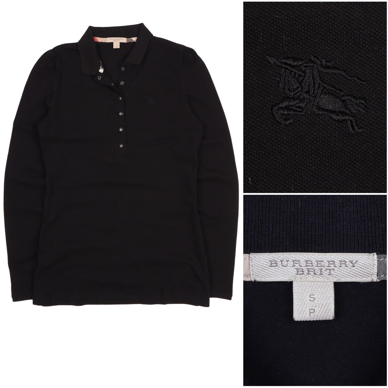 Women's Burberry Brit Black Longsleeve Logo Polo T Shirt Size S