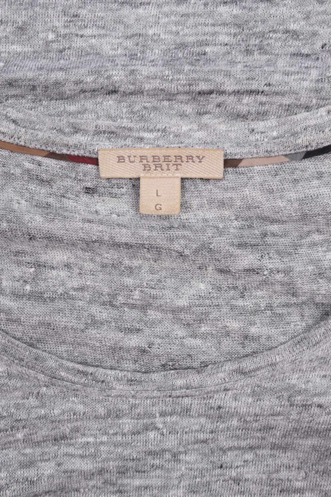 Women's Burberry Brit Grey Melange Logo Linen T Shirt Size L