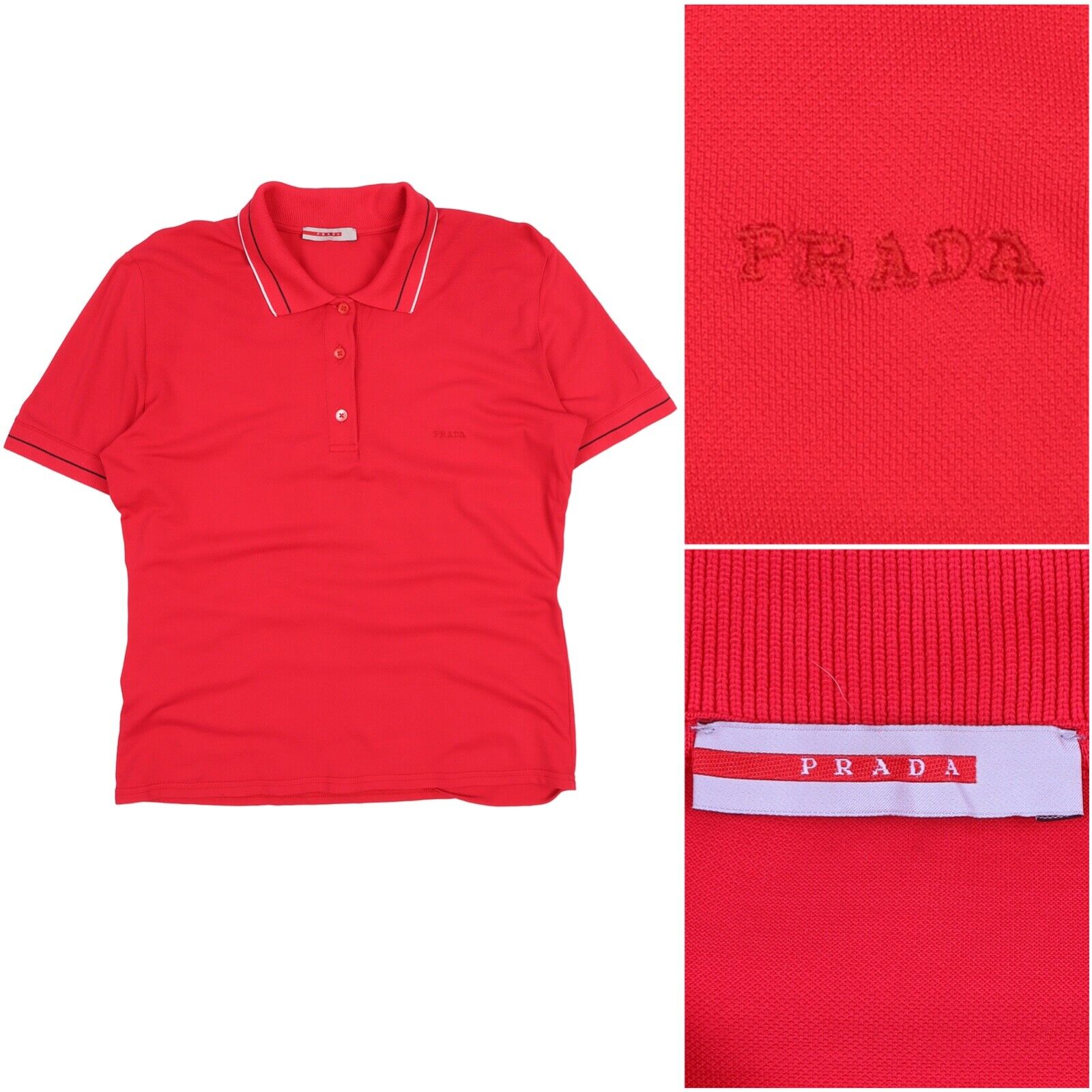 Women's PRADA Red Logo Polo T Shirt Size XL