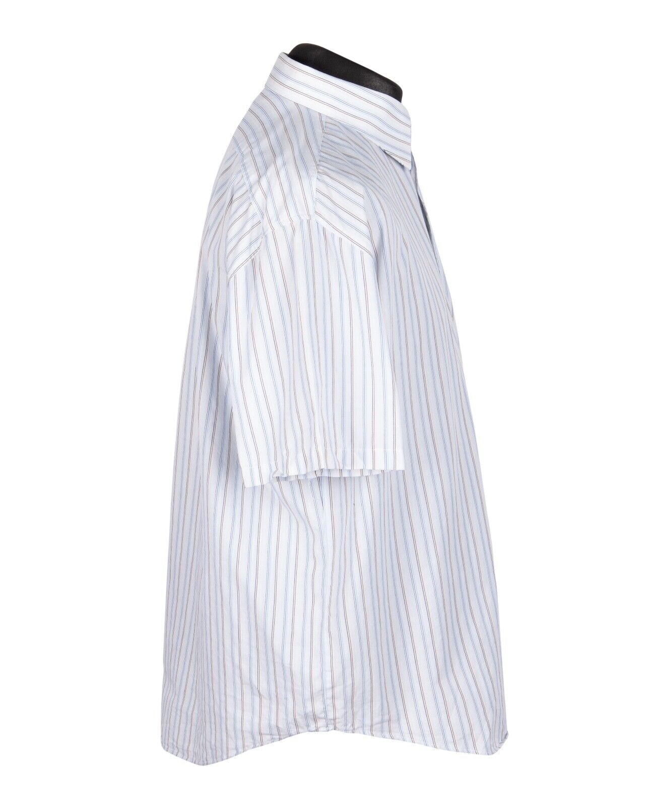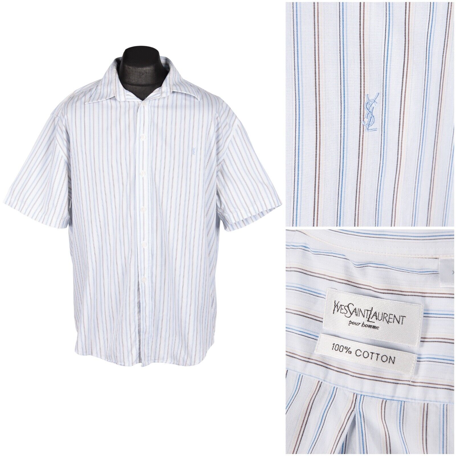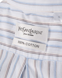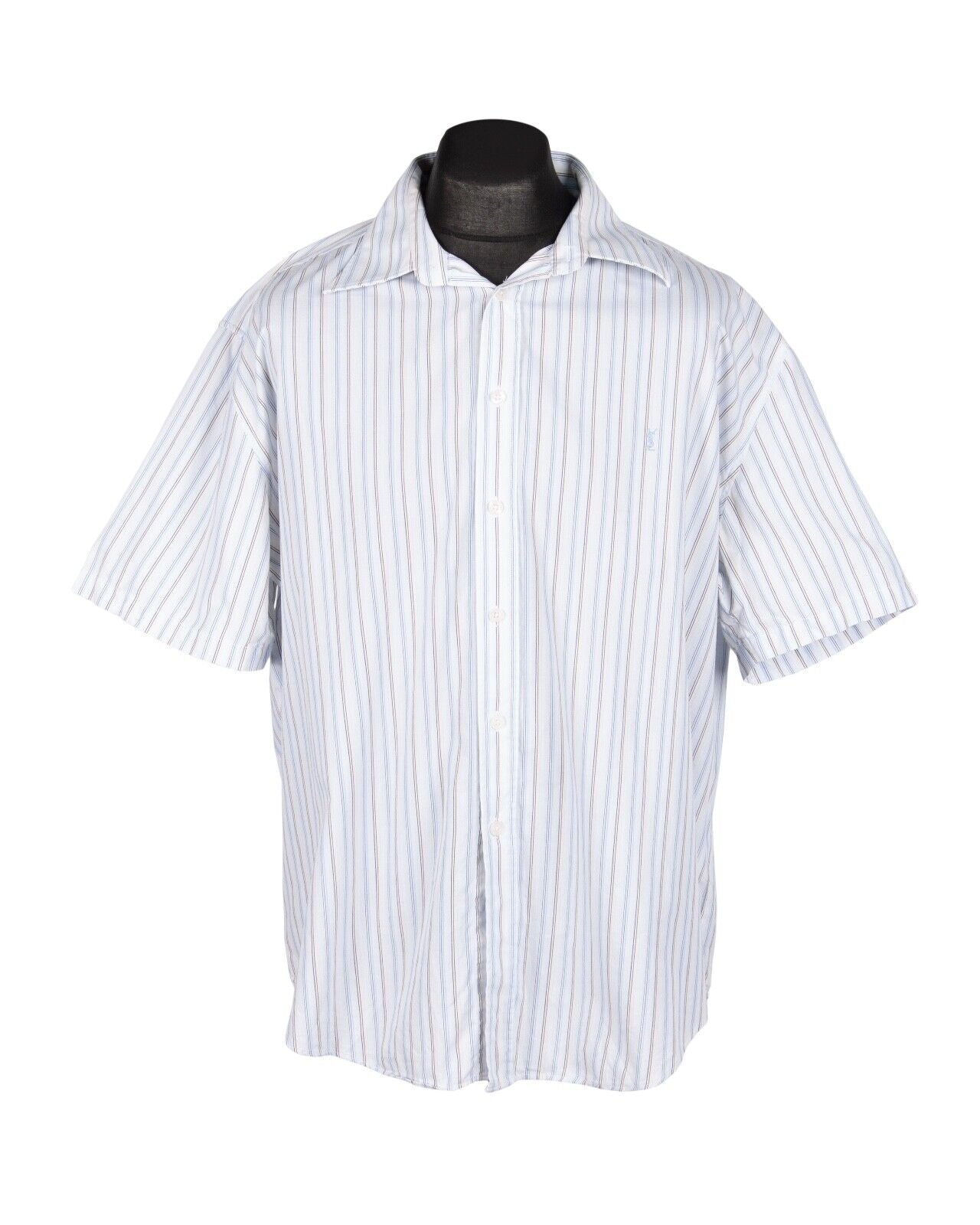 YVES SAINT LAURENT Shirt Navy Blue Striped Cotton Men's Short Sleeve Size XL