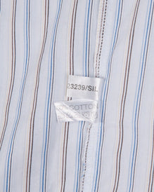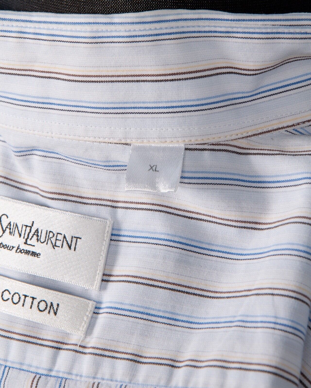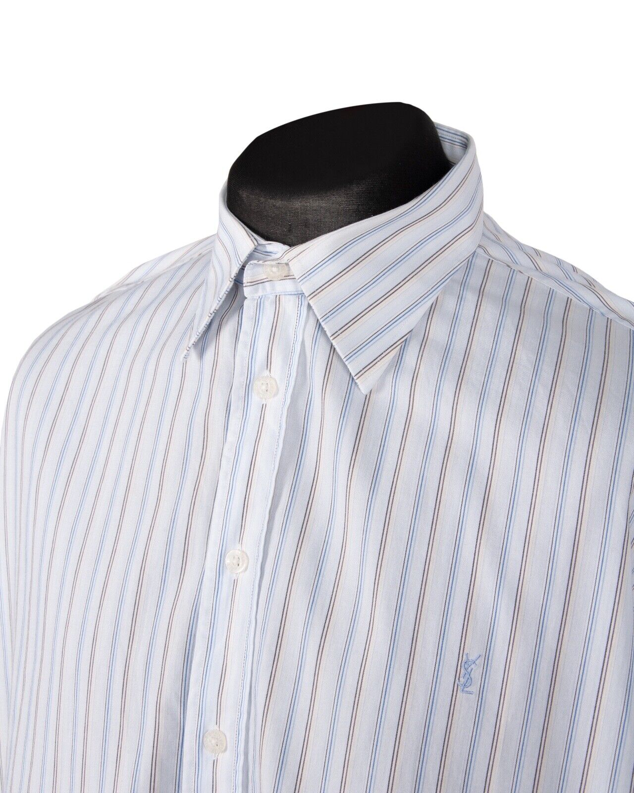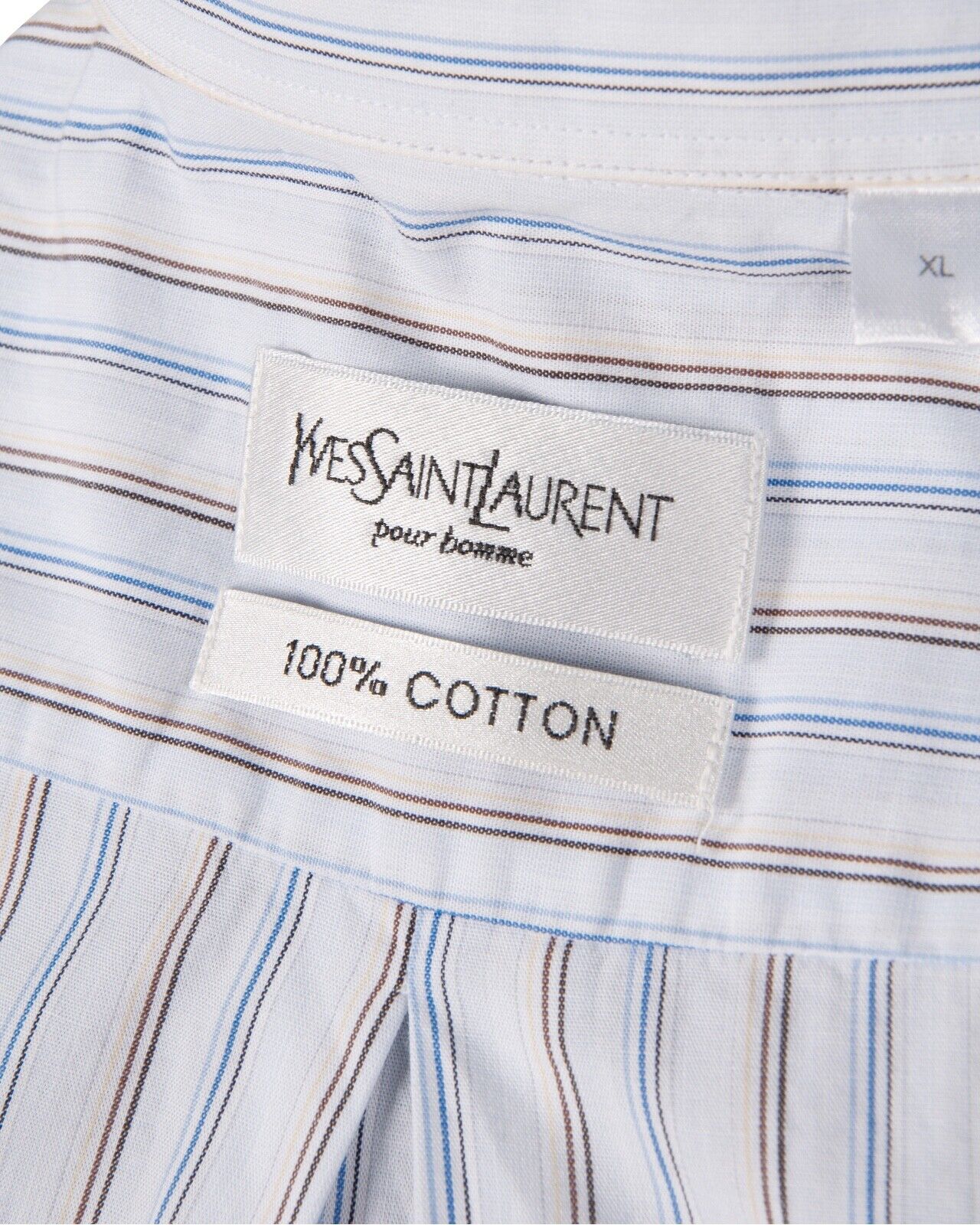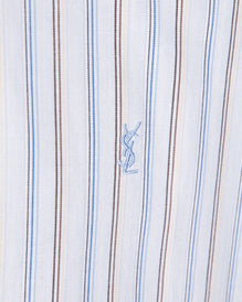 YVES SAINT LAURENT Shirt Navy Blue Striped Cotton Men's Short Sleeve Size XL