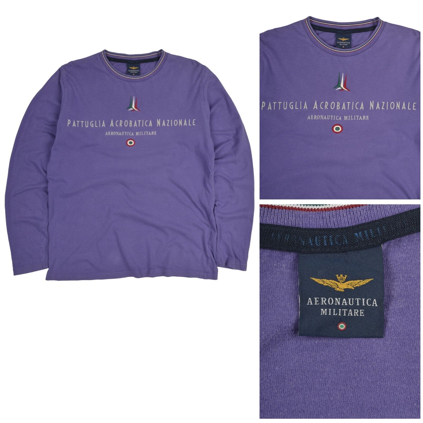 AERONAUTICA MILITARE Long Sleeve T-Shirt Purple Logo Cotton Women's Top Size 14