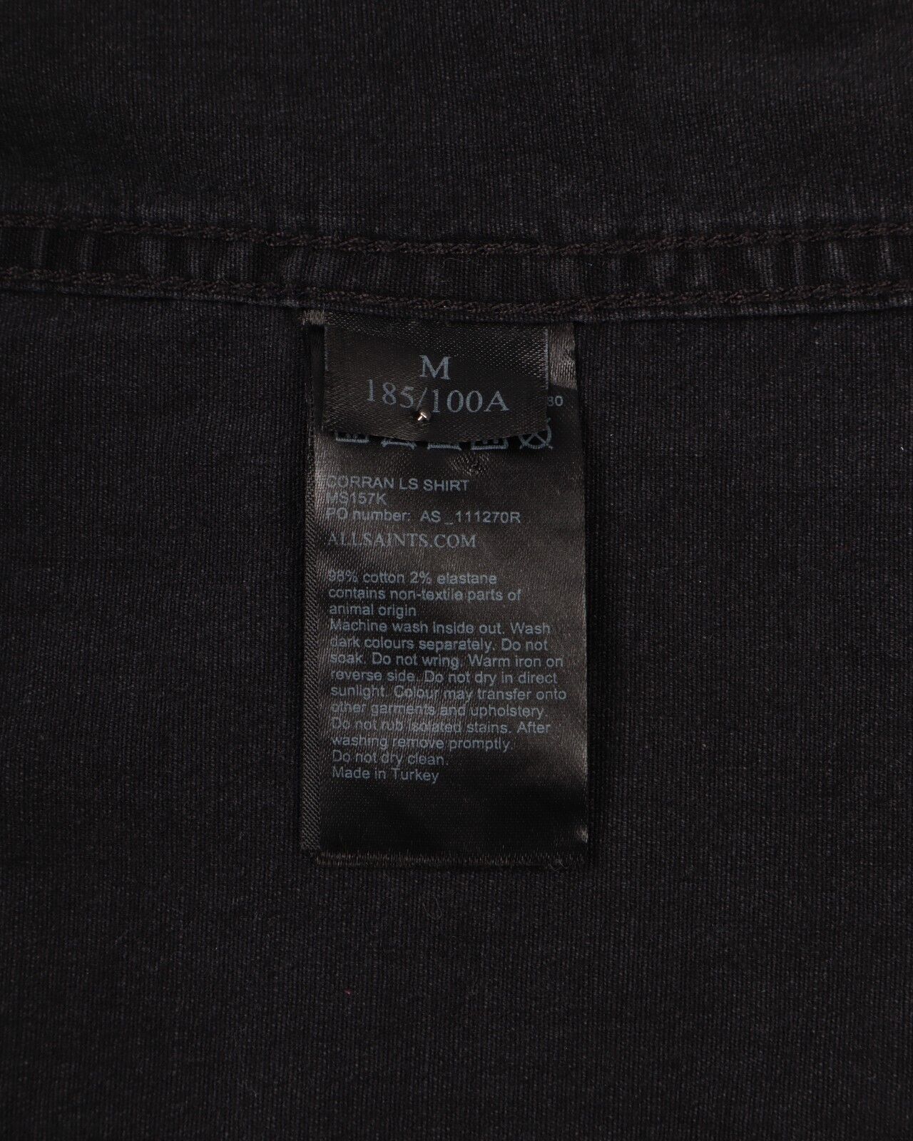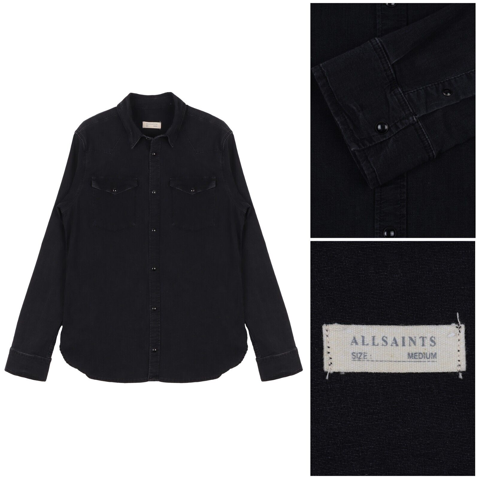 ALLSAINTS Corran Ls Shirt Black Denim Cotton Men's Button Up Size M