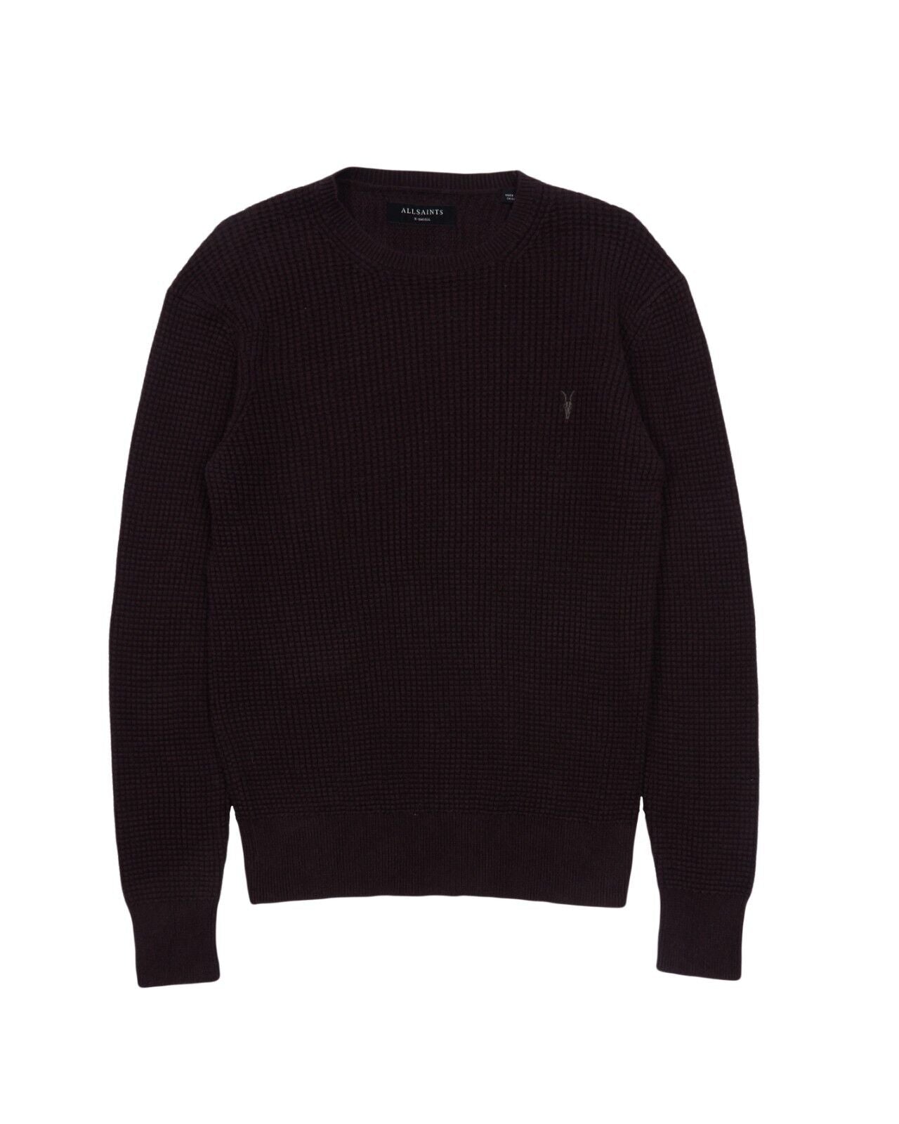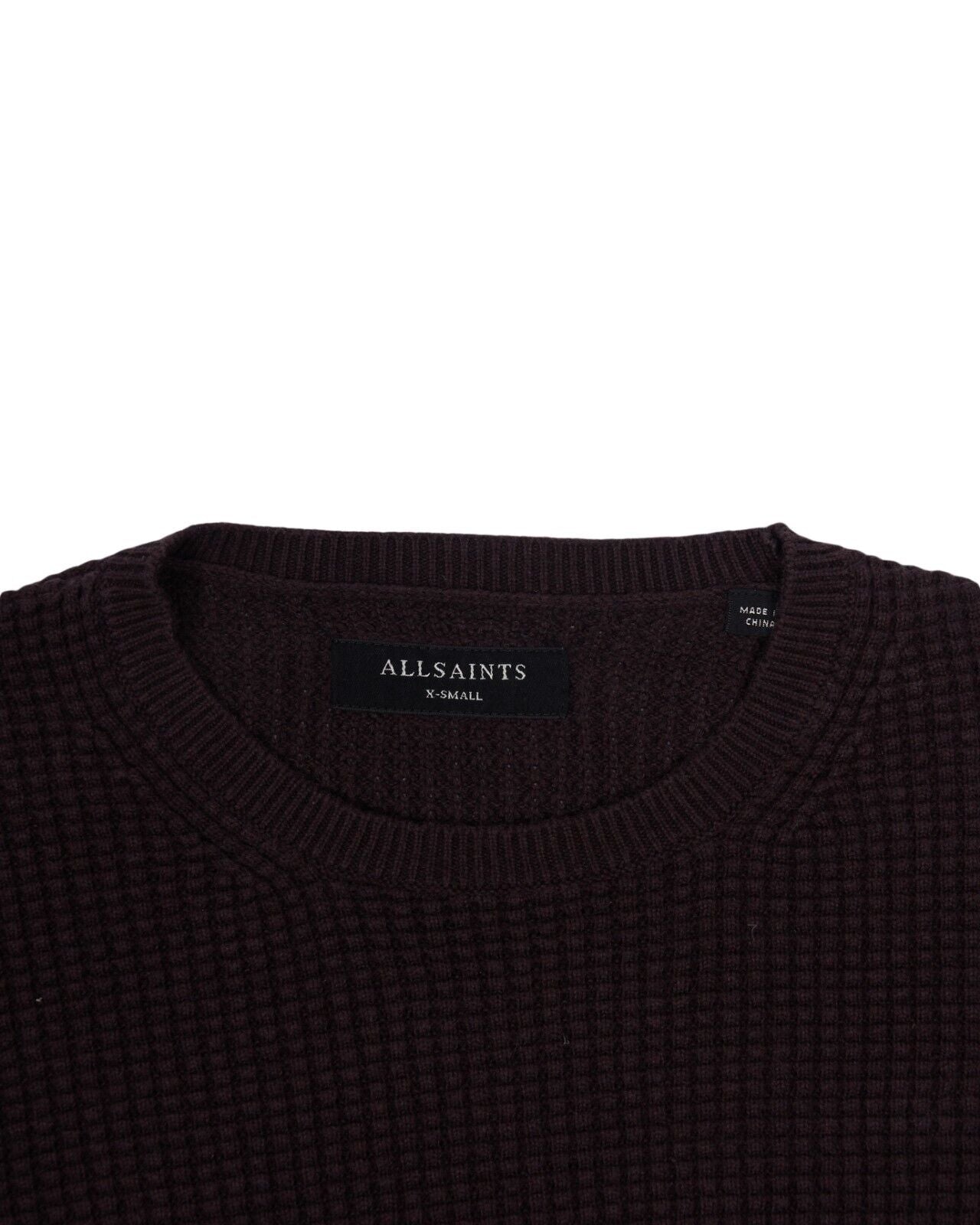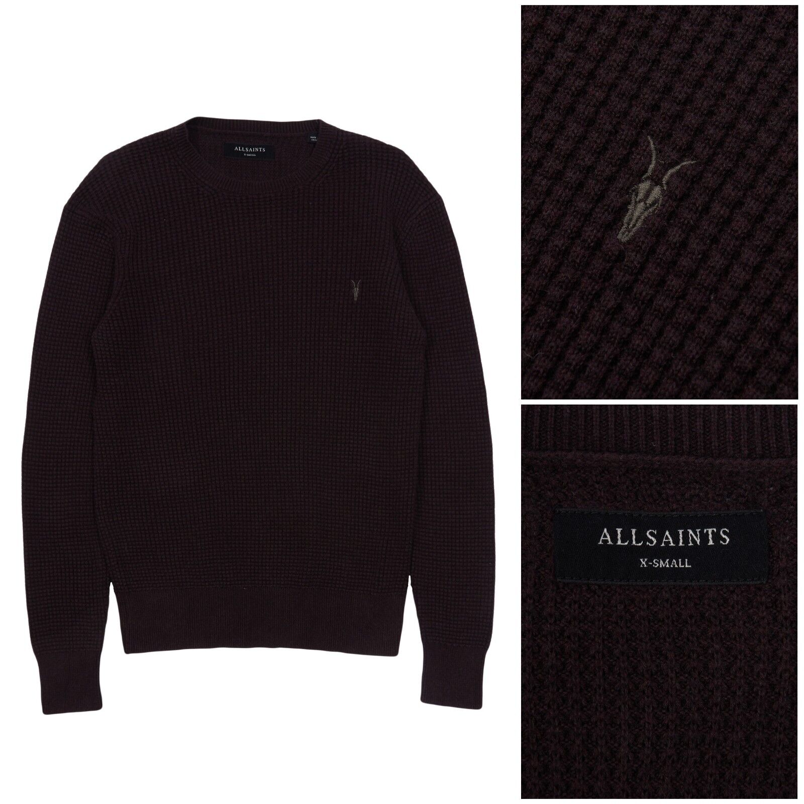 ALLSAINTS Crew Sweater Brown Waffle Cotton Mens Knit Jumper Size XS