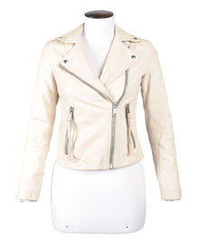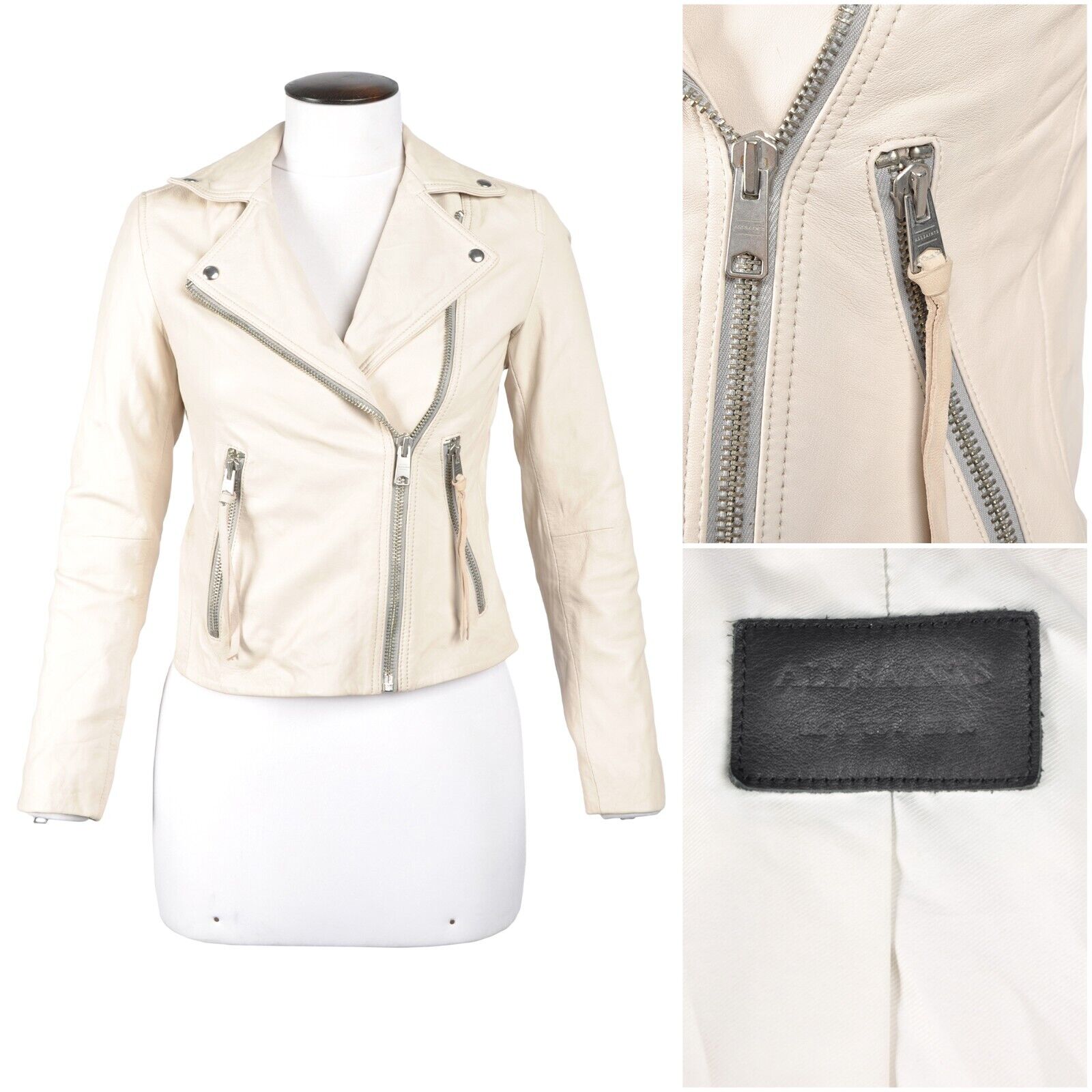 ALLSAINTS Dalby Biker Jacket Ivory Suede Leather Short Women's Size 36