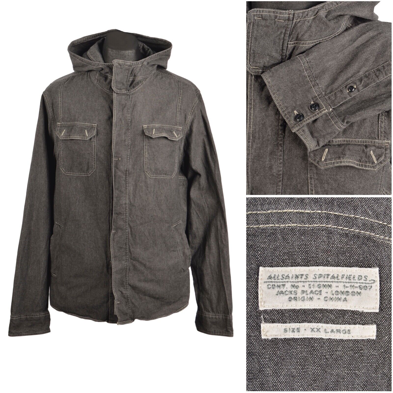 ALLSAINTS Gray Cotton Men's Hooded Shirt Jacket Size XXL