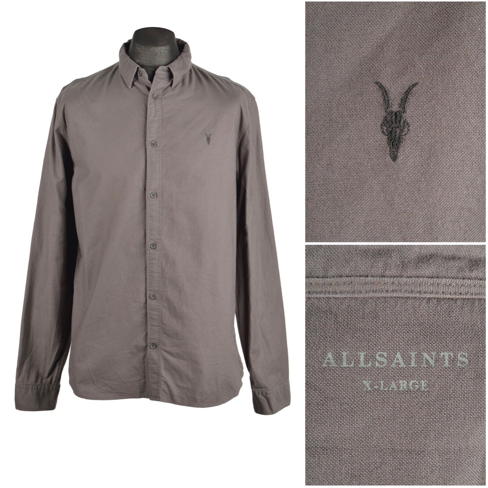 ALLSAINTS Gray Oxford Cotton Men's Shirt Size XL