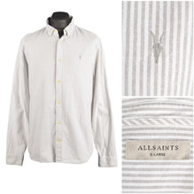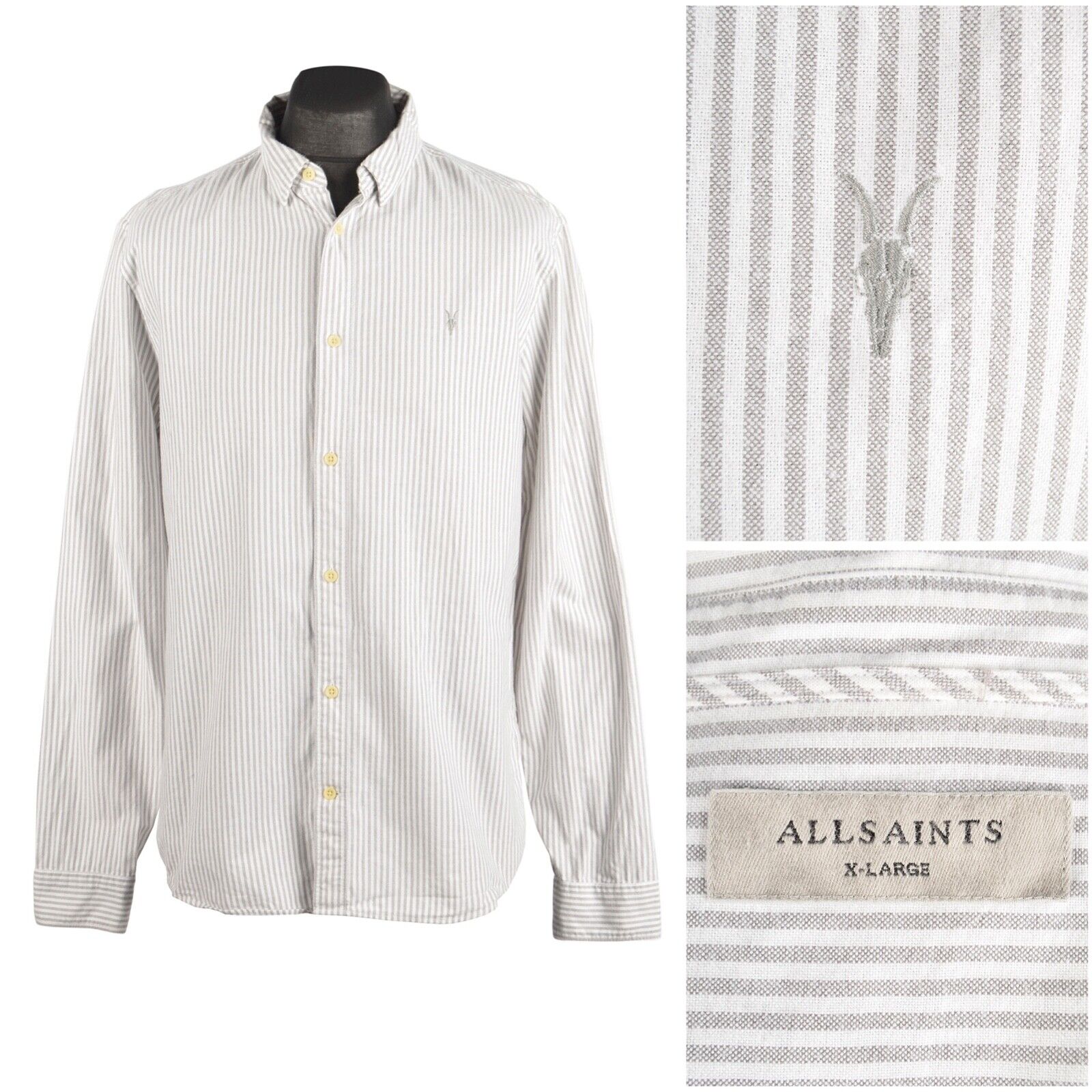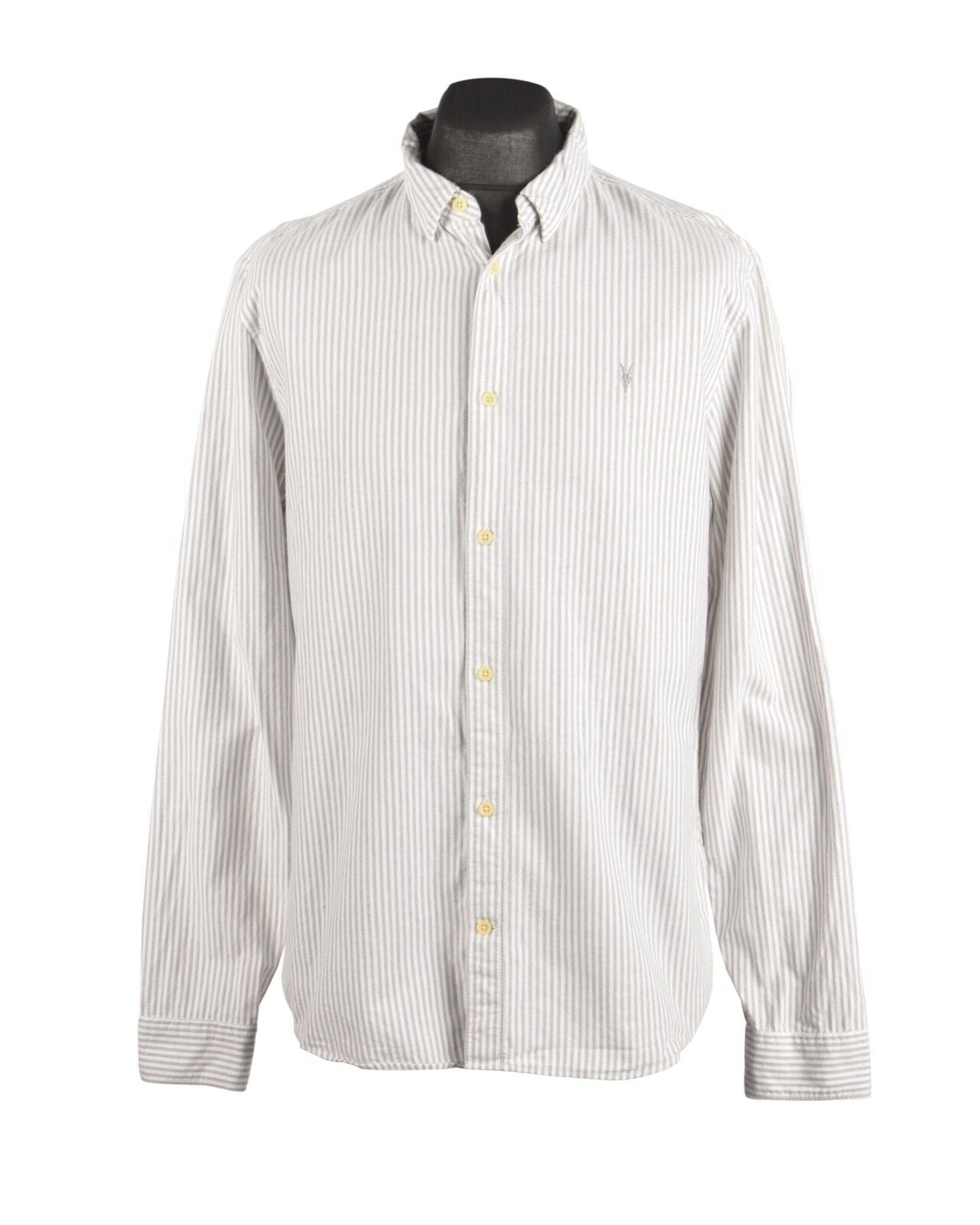 ALLSAINTS Gray Striped Oxford Cotton Men's Shirt Size XL