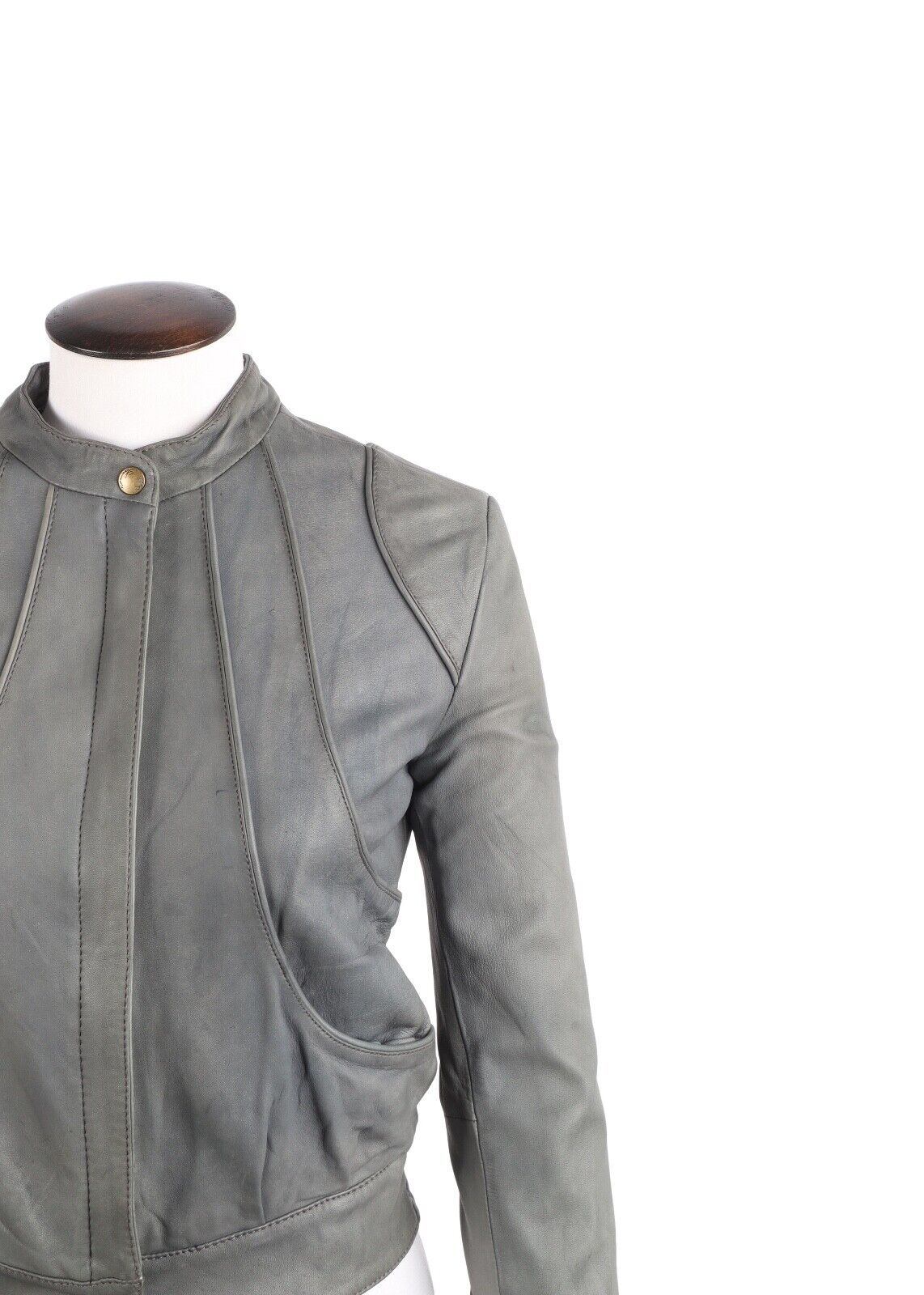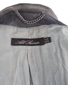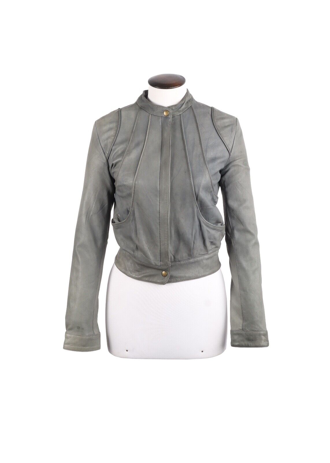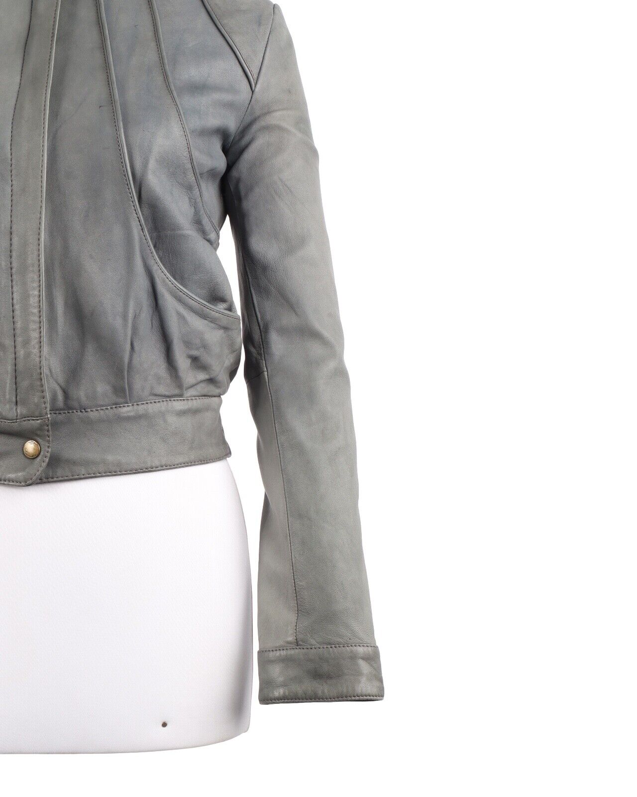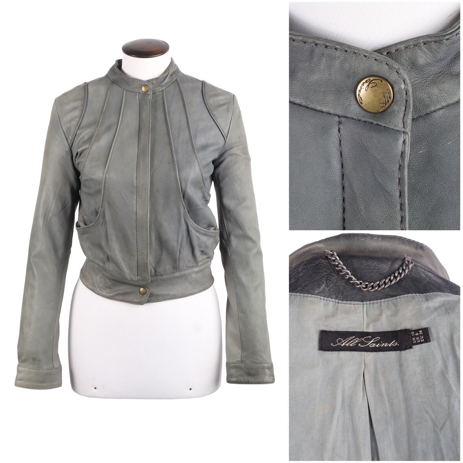 ALLSAINTS Leather Bomber Blue Women's Jacket Size 38 IT