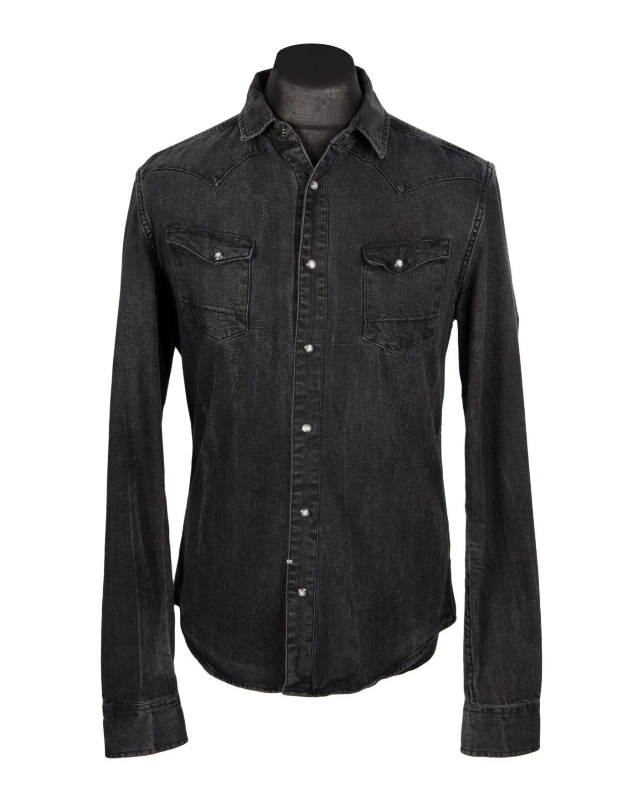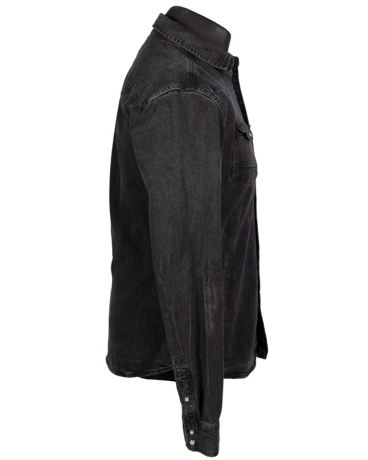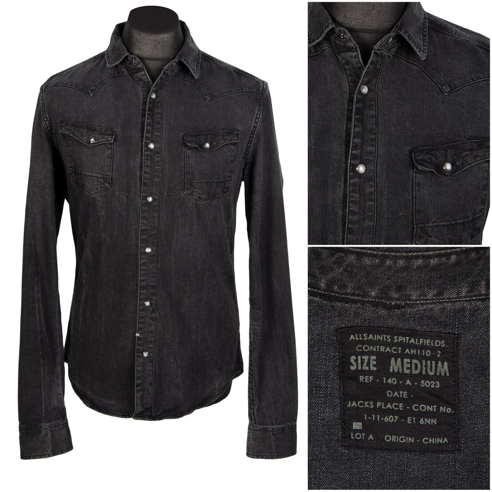 ALLSAINTS Snap Shirt Grey Denim Cotton Mens Size M