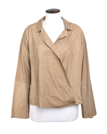 ANNETTE GORTZ Leather Jacket Brown Lightweight Unlined Women's Wrap Size 40