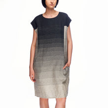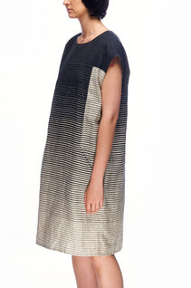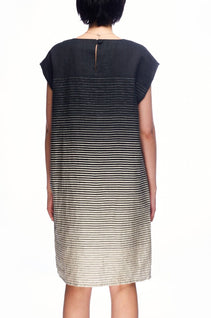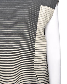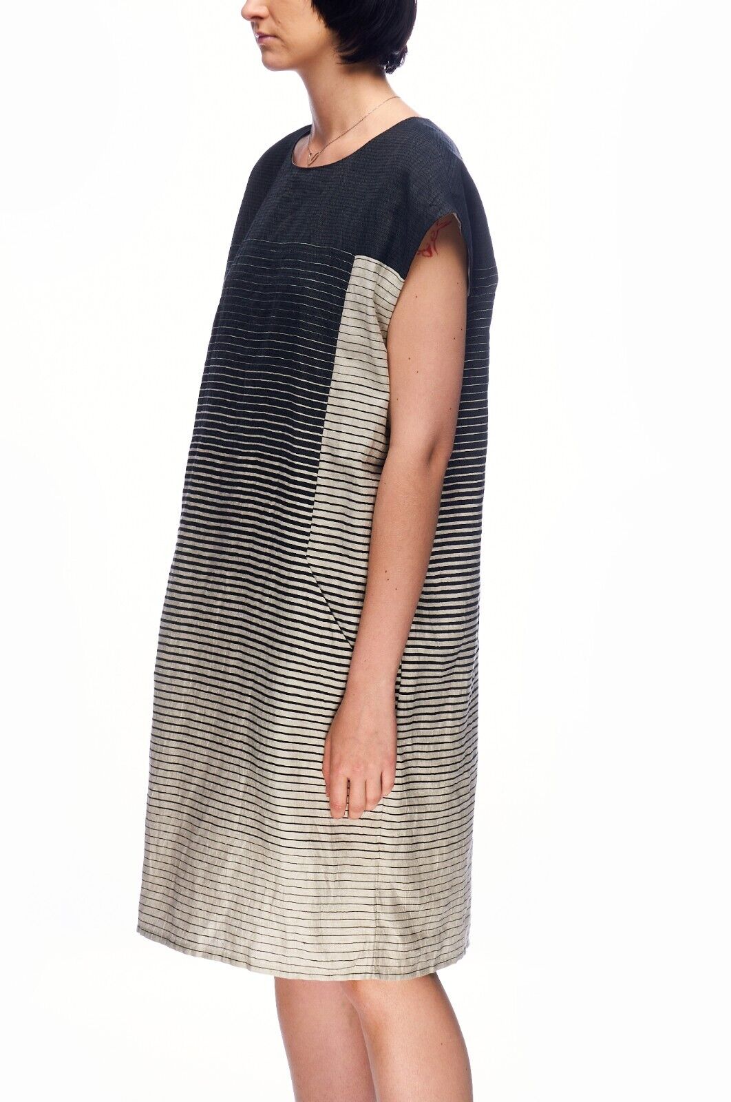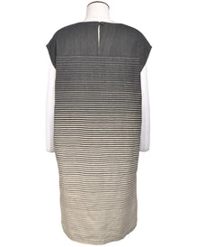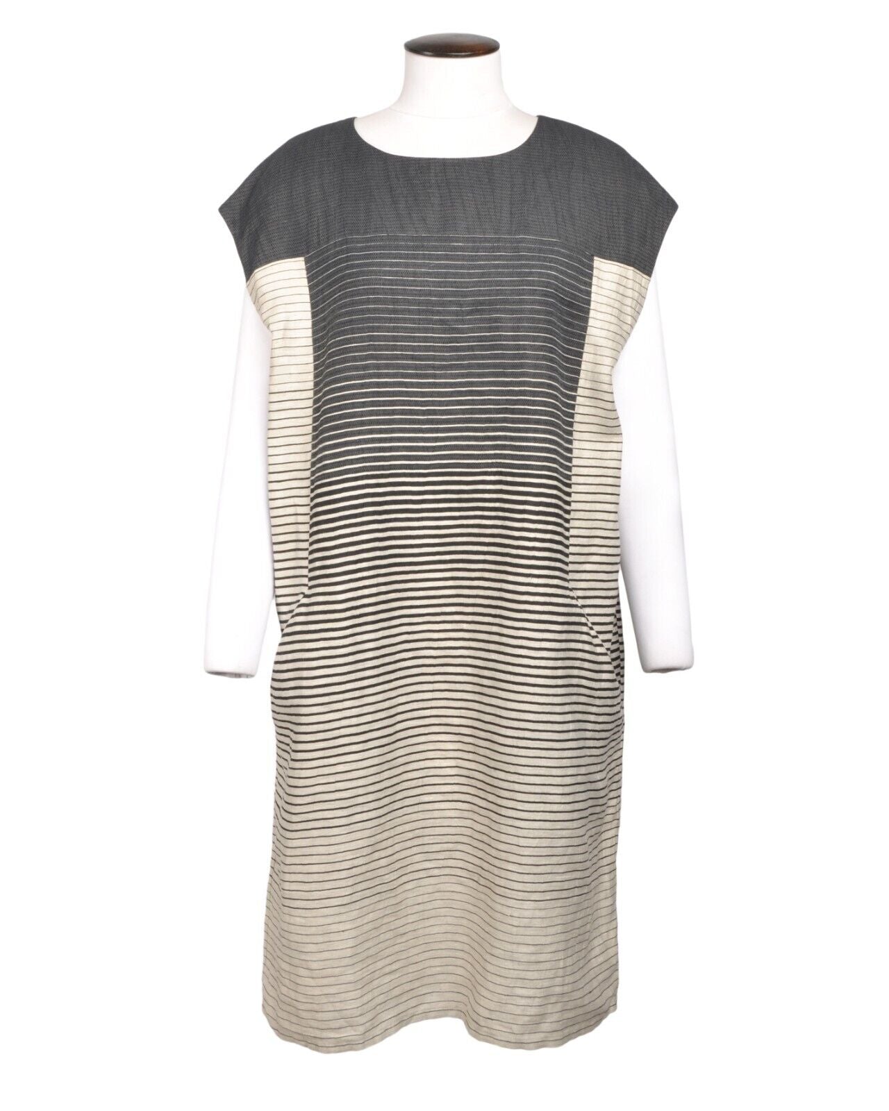 ANNETTE GORTZ Shift Dress Gray White Stripe Linen Mix Round Neck Womens Size 42
