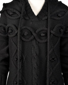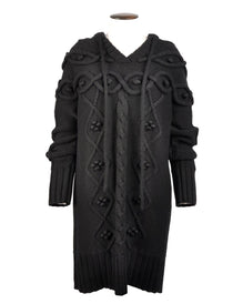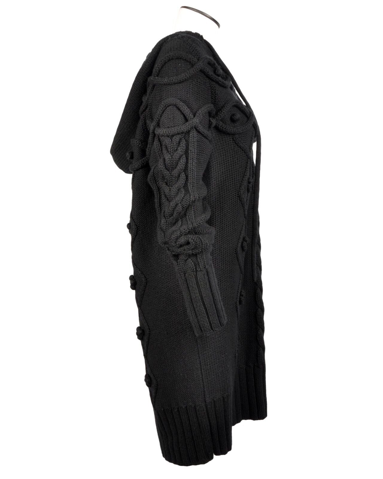 BARBOUR Dress Hooded Knit Wool Heavyweight Black Jumper Size L