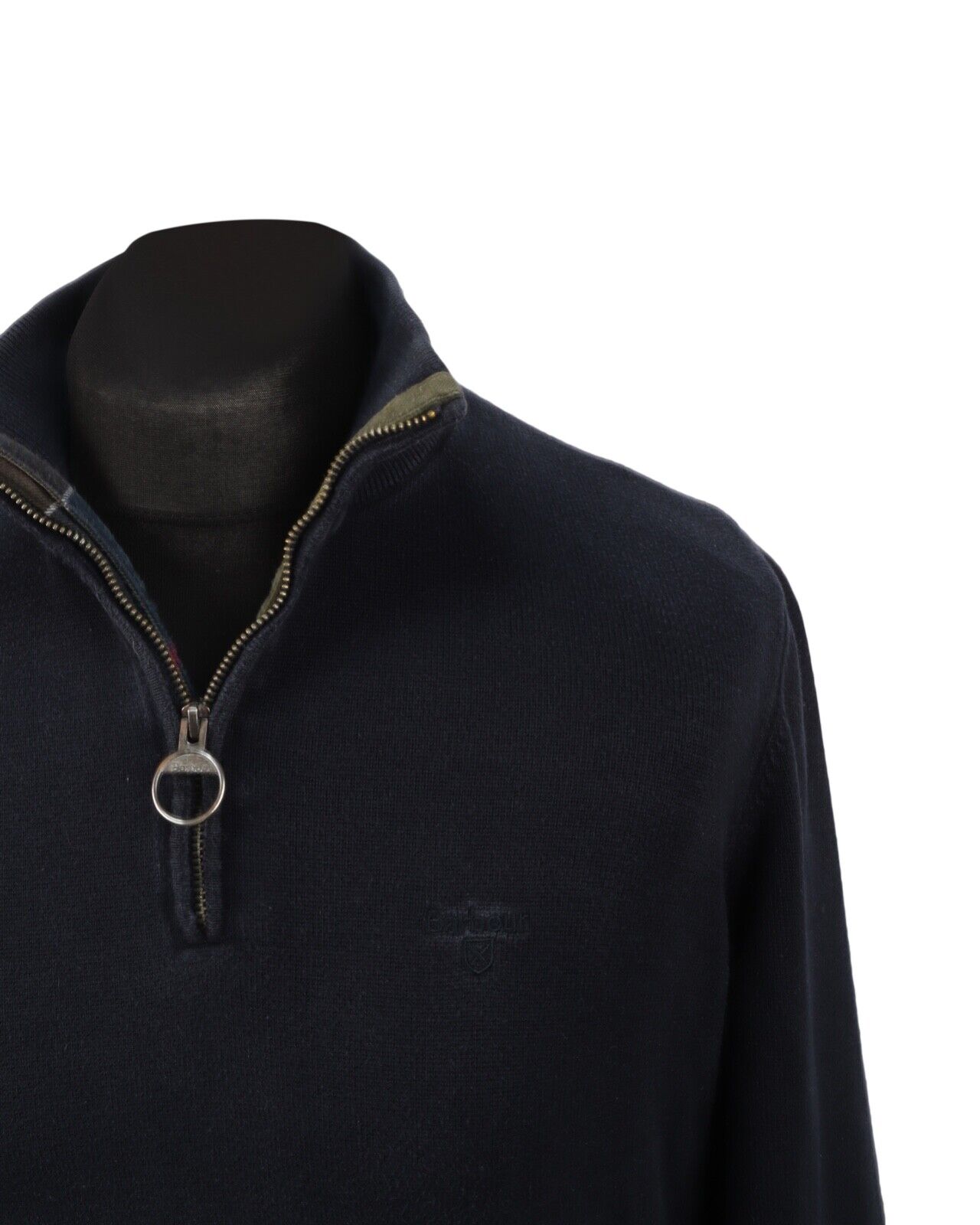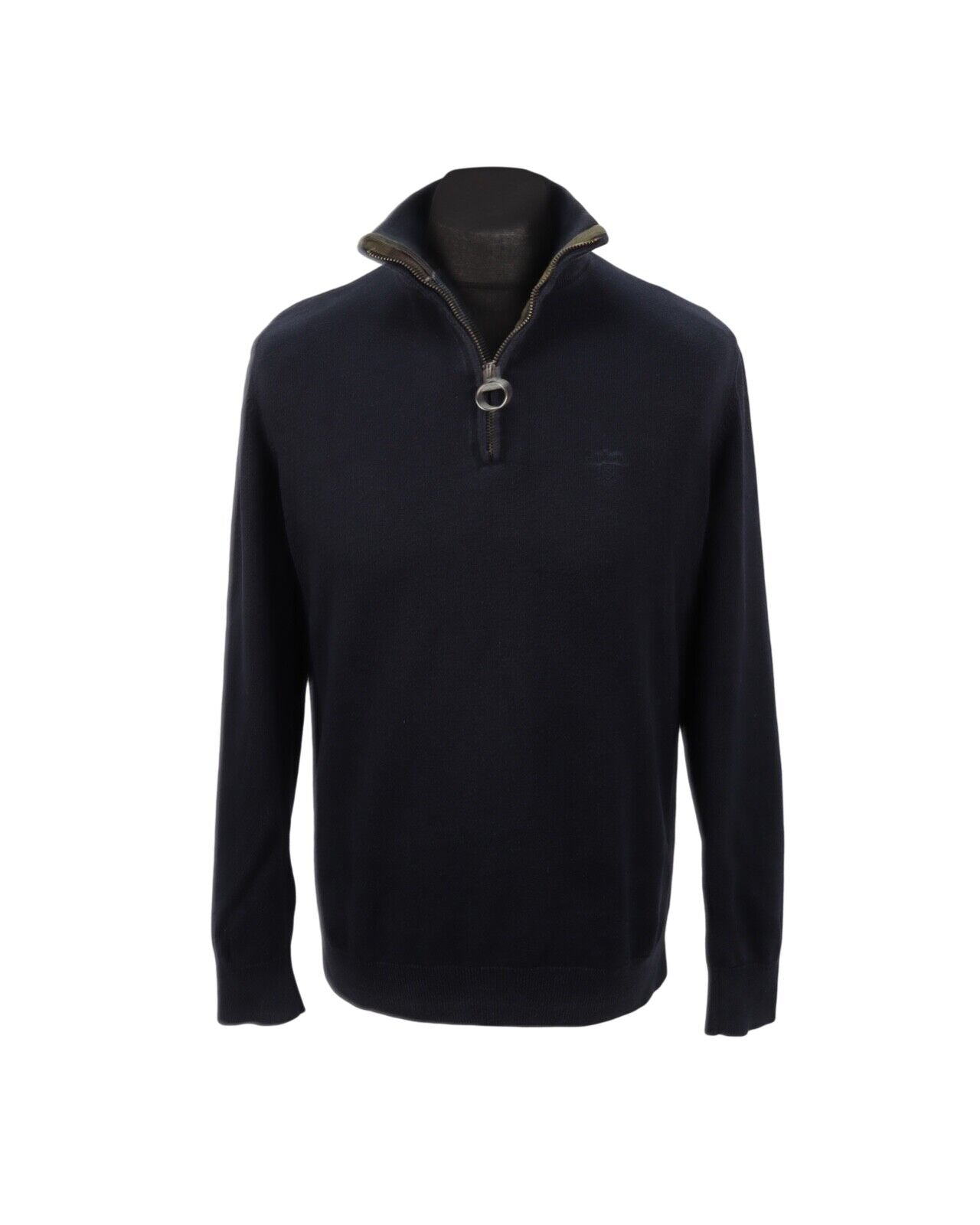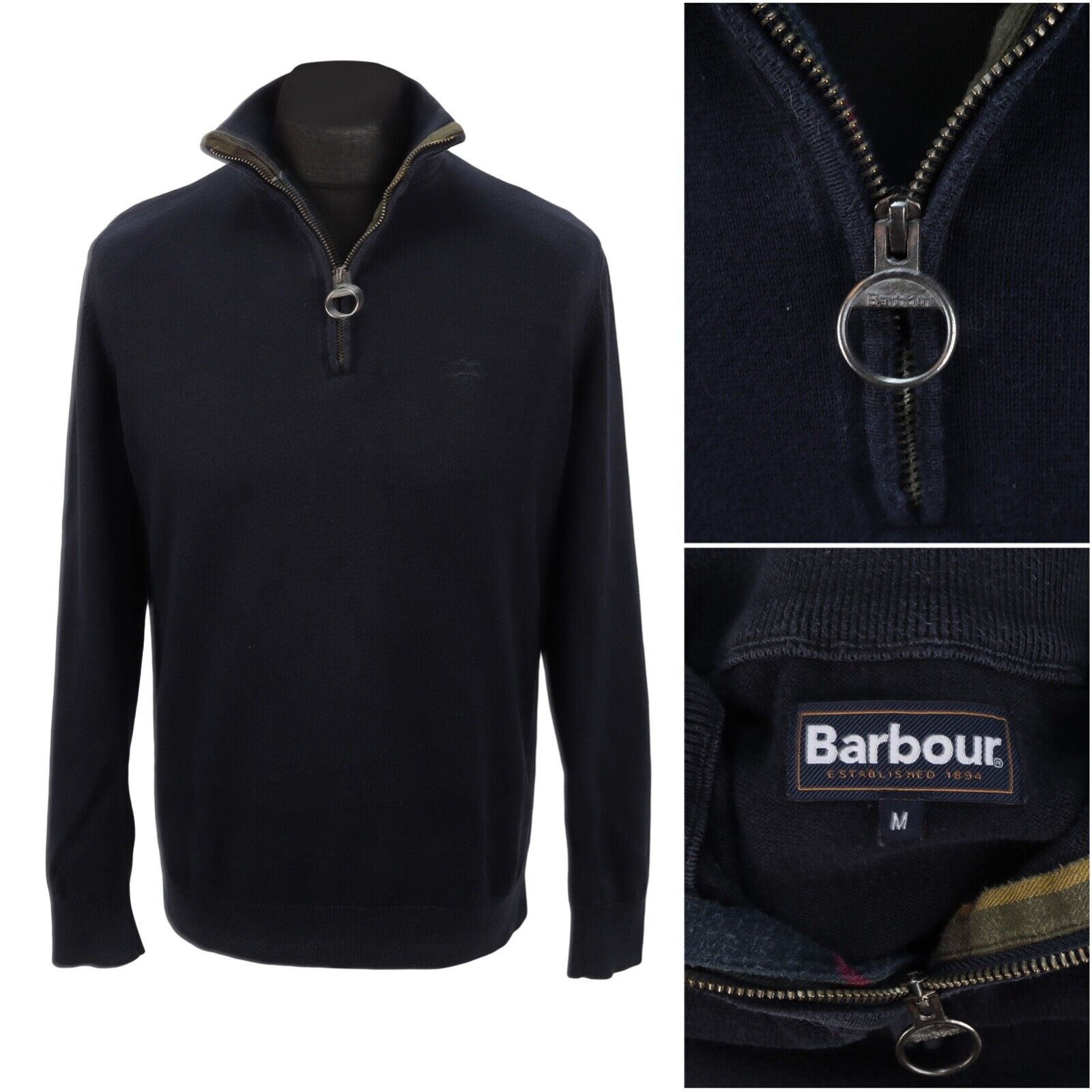 BARBOUR Jumper Navy Blue Zip Neck Cotton Men's Size M